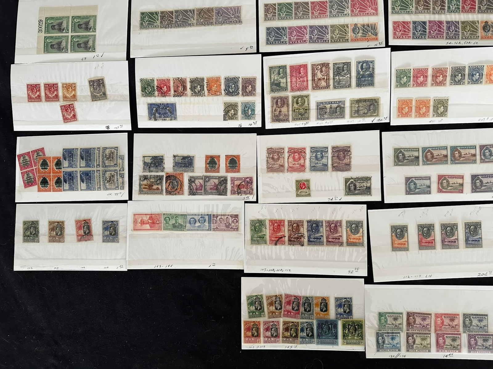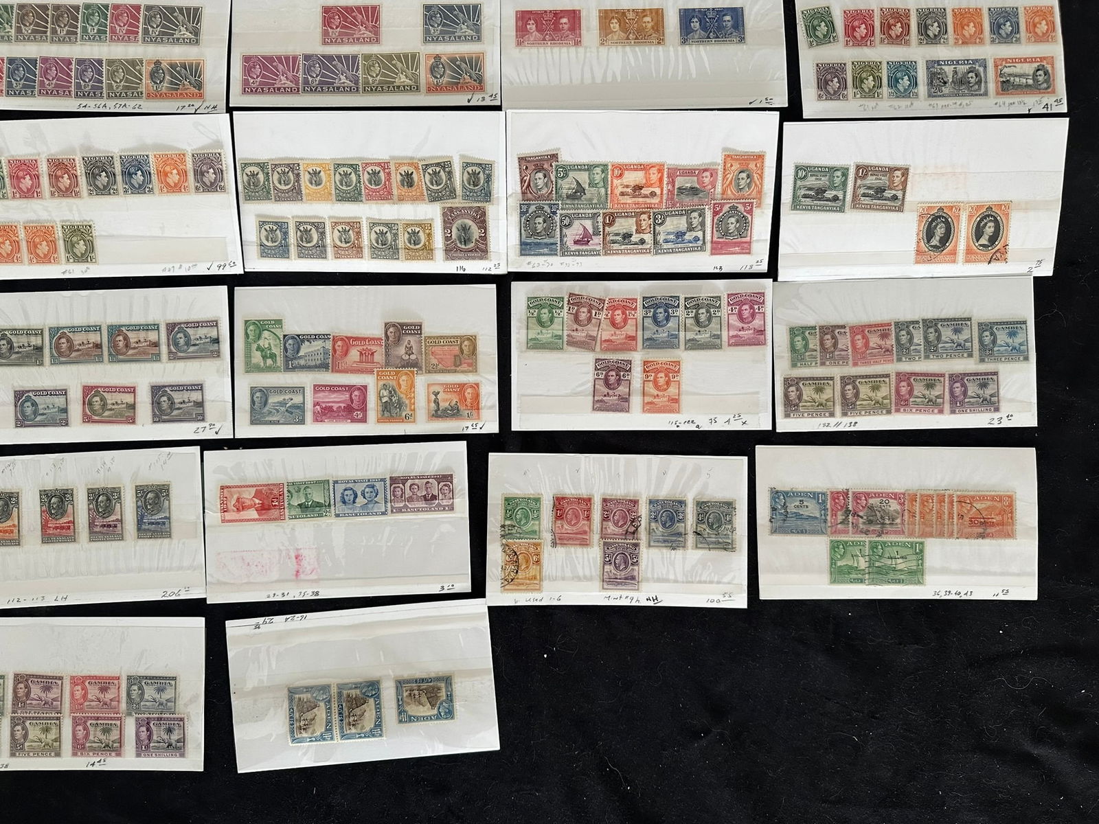 927 imageBritish Africa 1902 - 1952, a MNH / Mh and used grouping on stock cards, Includes Basutoland, Bechuanaland, Gambia, Gold Coast, KUT, Nigeria, Rhodesias, Nyasaland, Sierra Leone, Somaliland, South Africa, Swaziland and Zanzibar, many part sets, high values to 5/- across many countries, Scott Value $2678, appears f-vf (Image 1) (Image 2) (Image 3) (Image 4) (Image 5)
