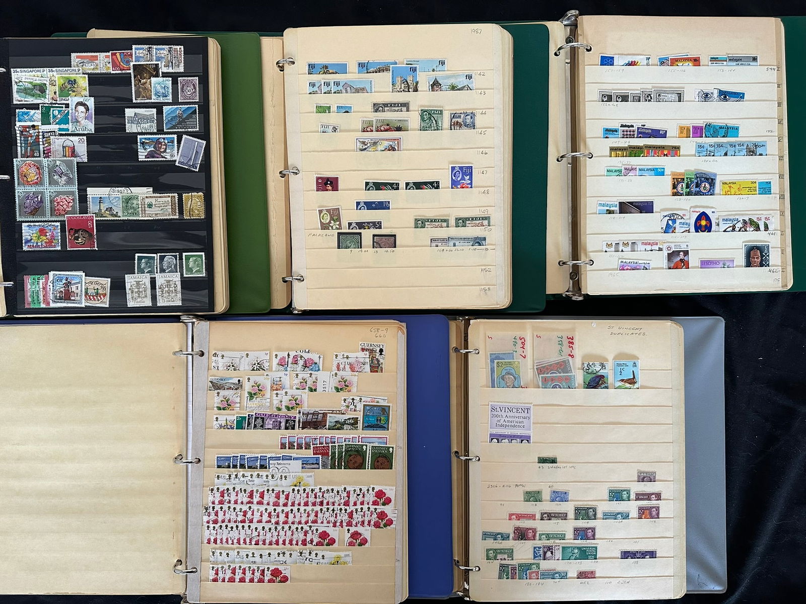 936 imageBritish Commonwealth 1900 - 1990's a MNH / MH ans used ex dealers stock on stocksheets in five well filled ring binders, with over 9400 stamps and a estimated value $2372, expect duplication appears f-vf (Image 1) (Image 2) (Image 3) (Image 4) (Image 5) (Image 6) (Image 7) (Image 8) (Image 9) (Image 10)