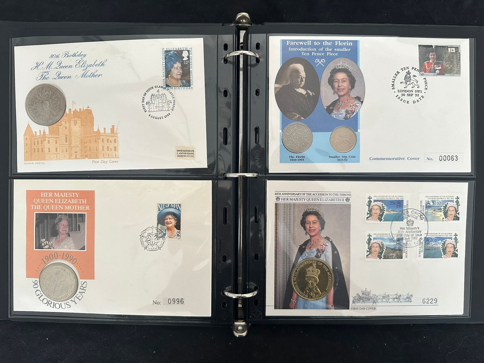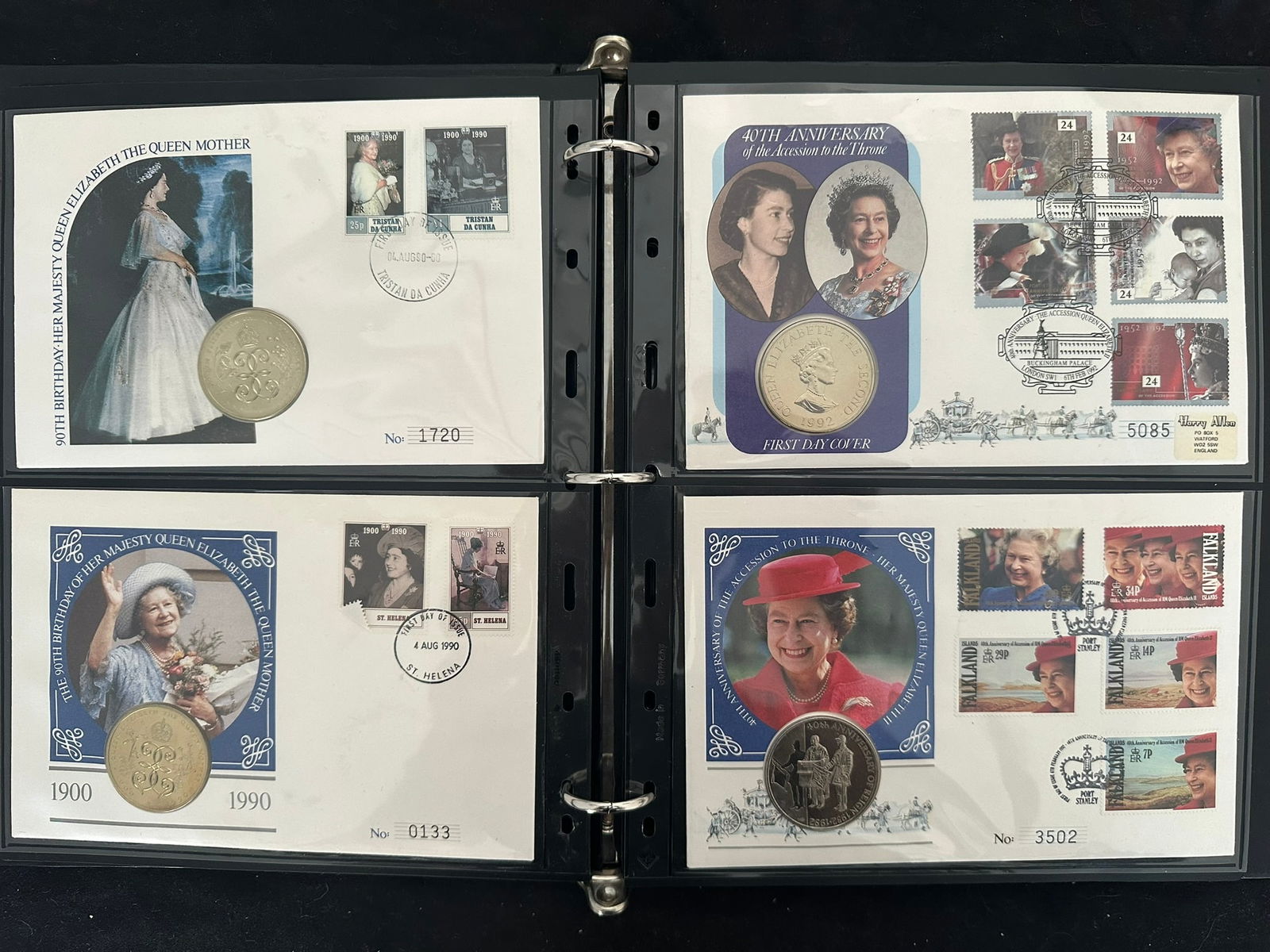932 imageGreat Britain and Commonwealth Countries 1980 - 2001, a Group of 18 stamp and coin covers, includes Guernsey, Scotland Alderney, Tristan Da Cunha, , St Helena. Falkland Islands, Isle of man, and more, all contained in binder, appears f-vf (Image 1) (Image 2) (Image 3) (Image 4) (Image 5) (Image 6) (Image 7) (Image 8)