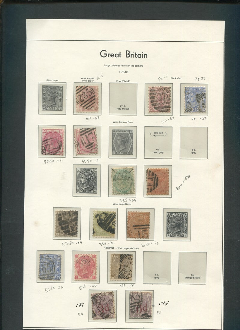 Great Britain 1873-1880, #44 / #95, a used selection on a pre-printed page, Scott value $2910, some faults, otherwise fine (Image