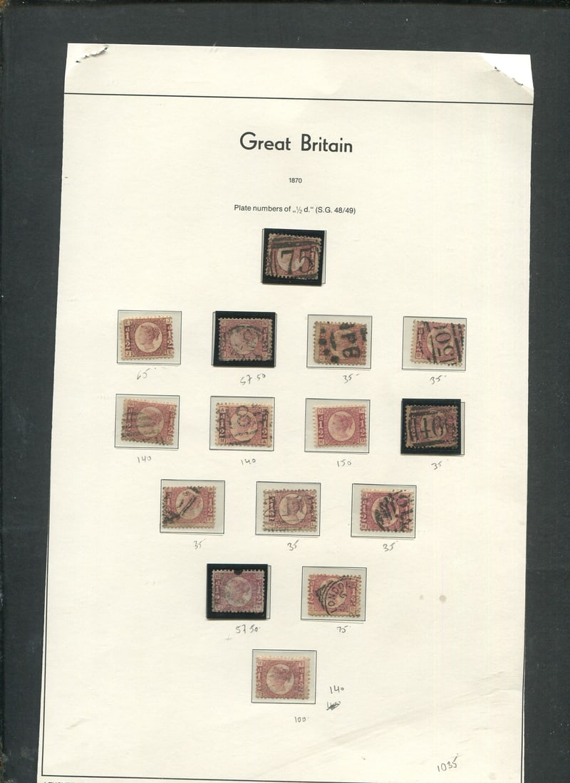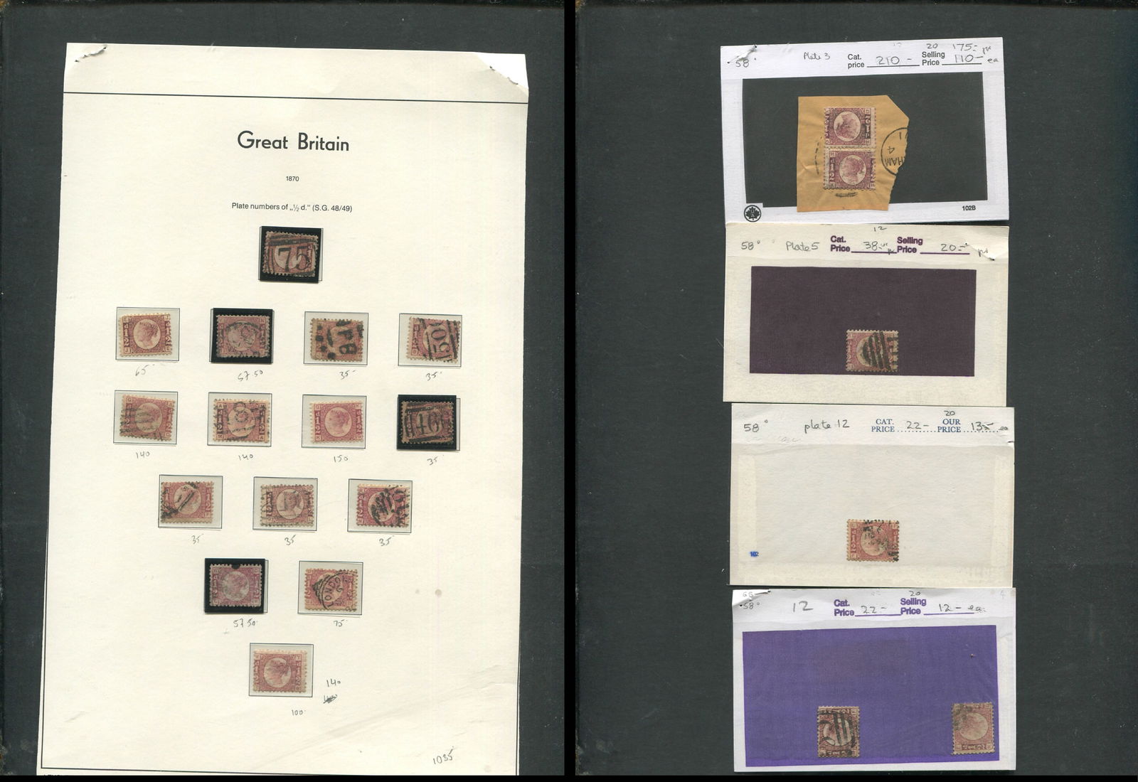 Great Britain 1870 #58, 1/2d rose, plates 3 - 20, a MH and used collection less the plate 9, include extra plate 3 , 5 and 12, Scott value $1250, appears f-vf (Image 1)