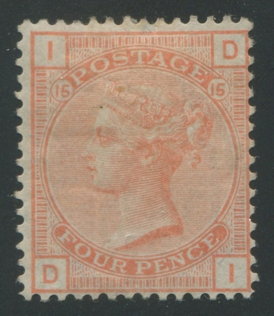 Great Britain 1876-1880 #69 MH 4d vermilion plate 15, (DI) Scott value $3500, some HR, appears f-vf (Image 1)