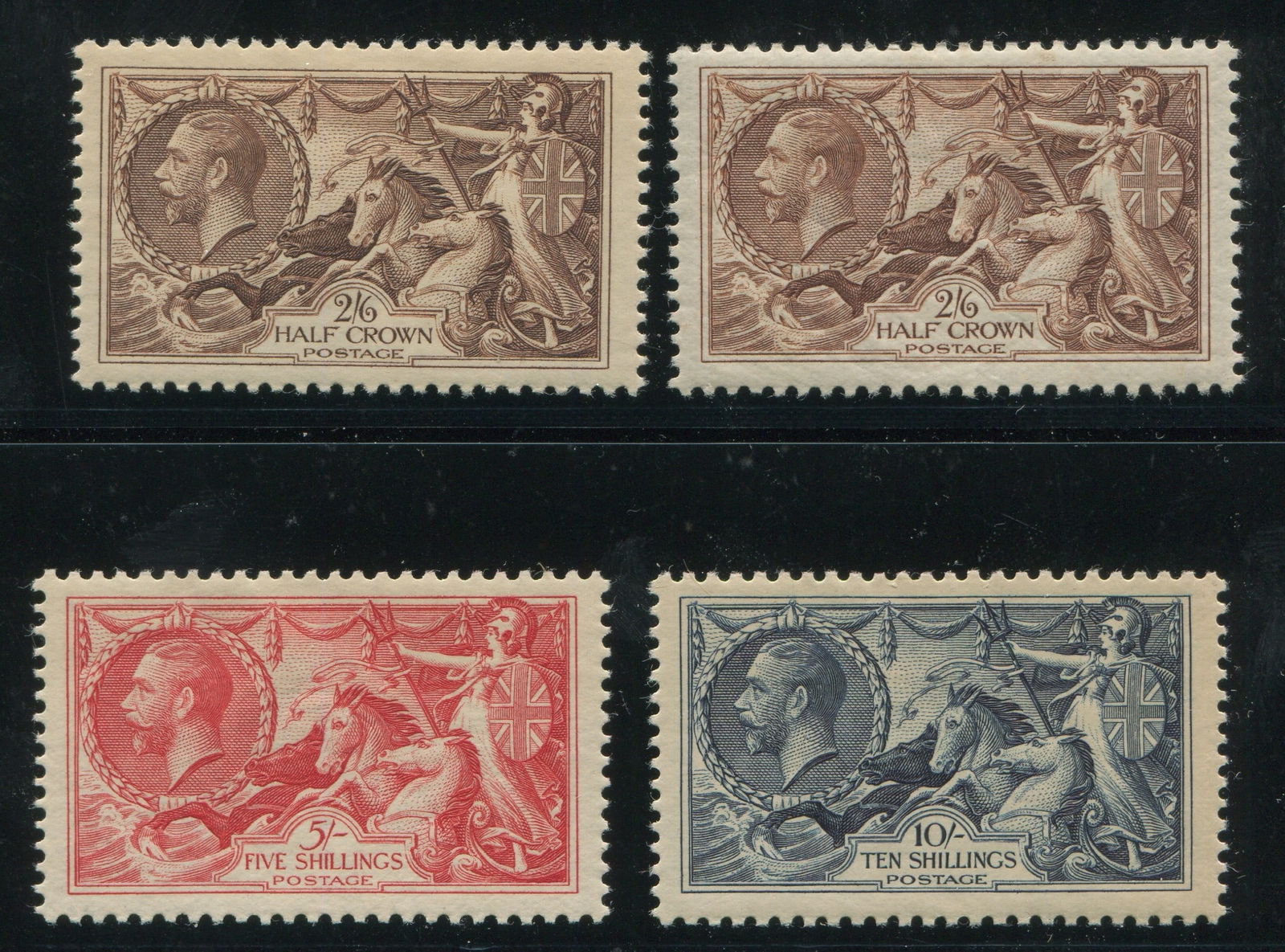 Great Britain 1934 #222 - #224, a MH set 2/6 to 10/-, with a shade for the 2/6, Scott value $700, appears f-vf (Image 1)