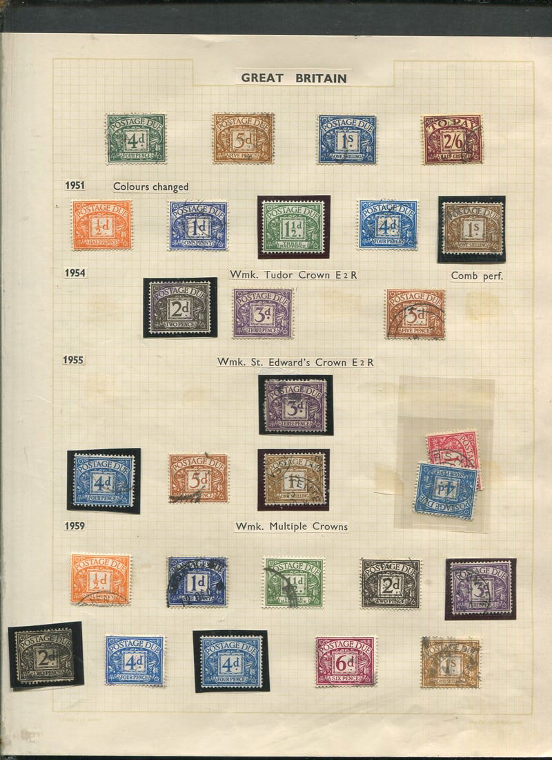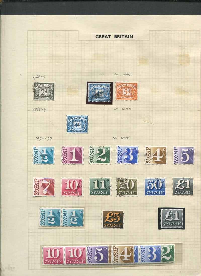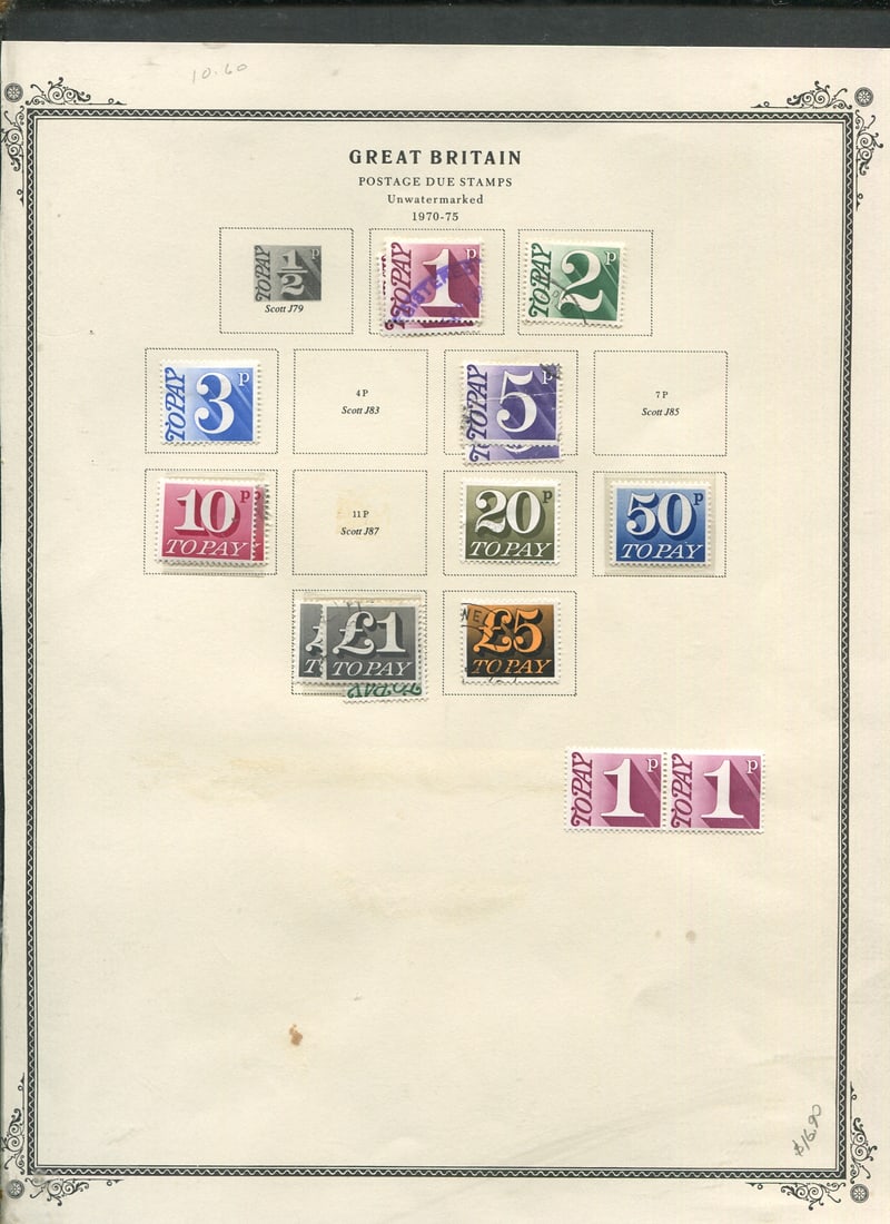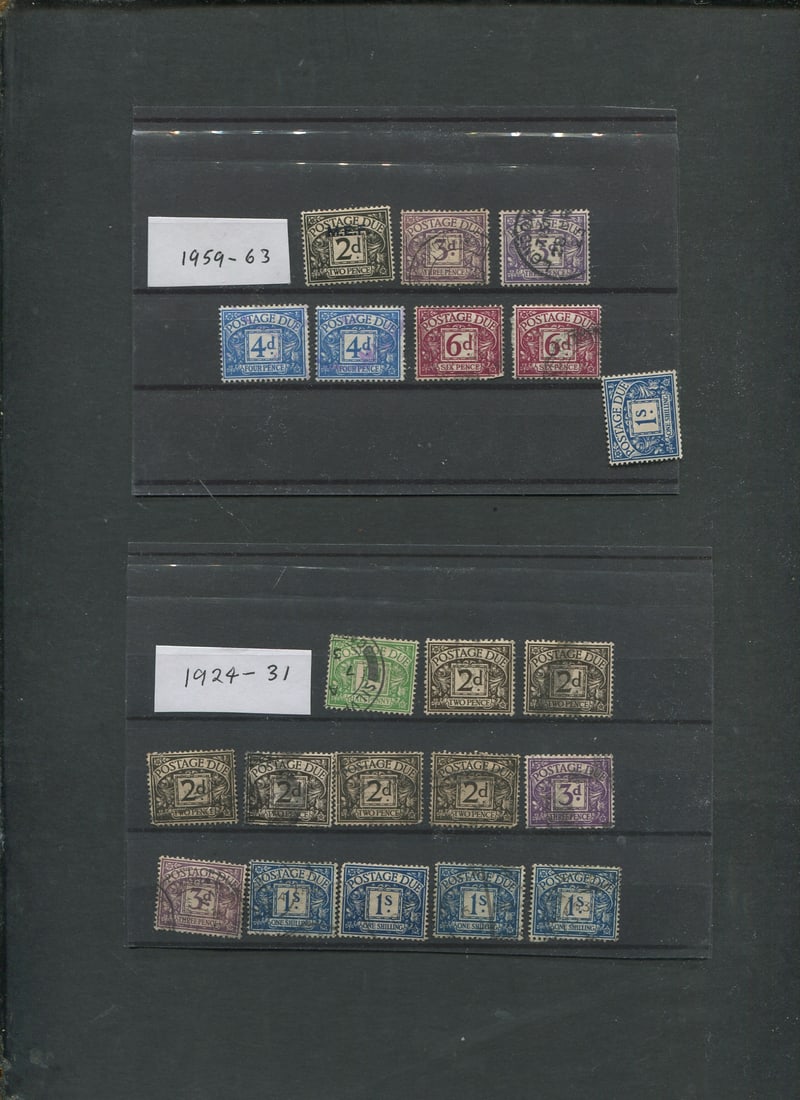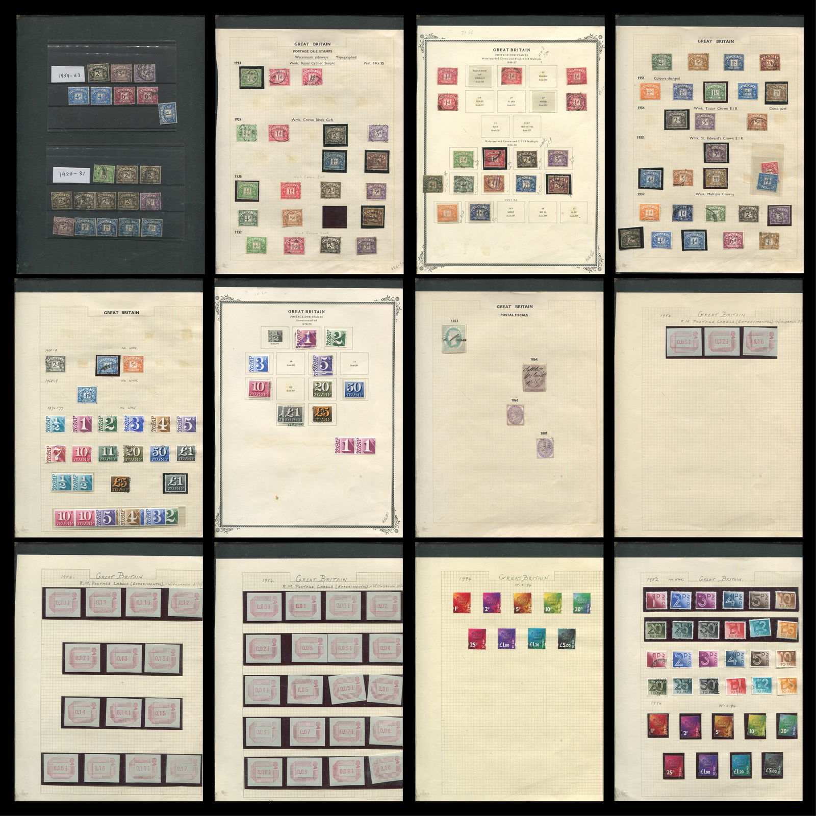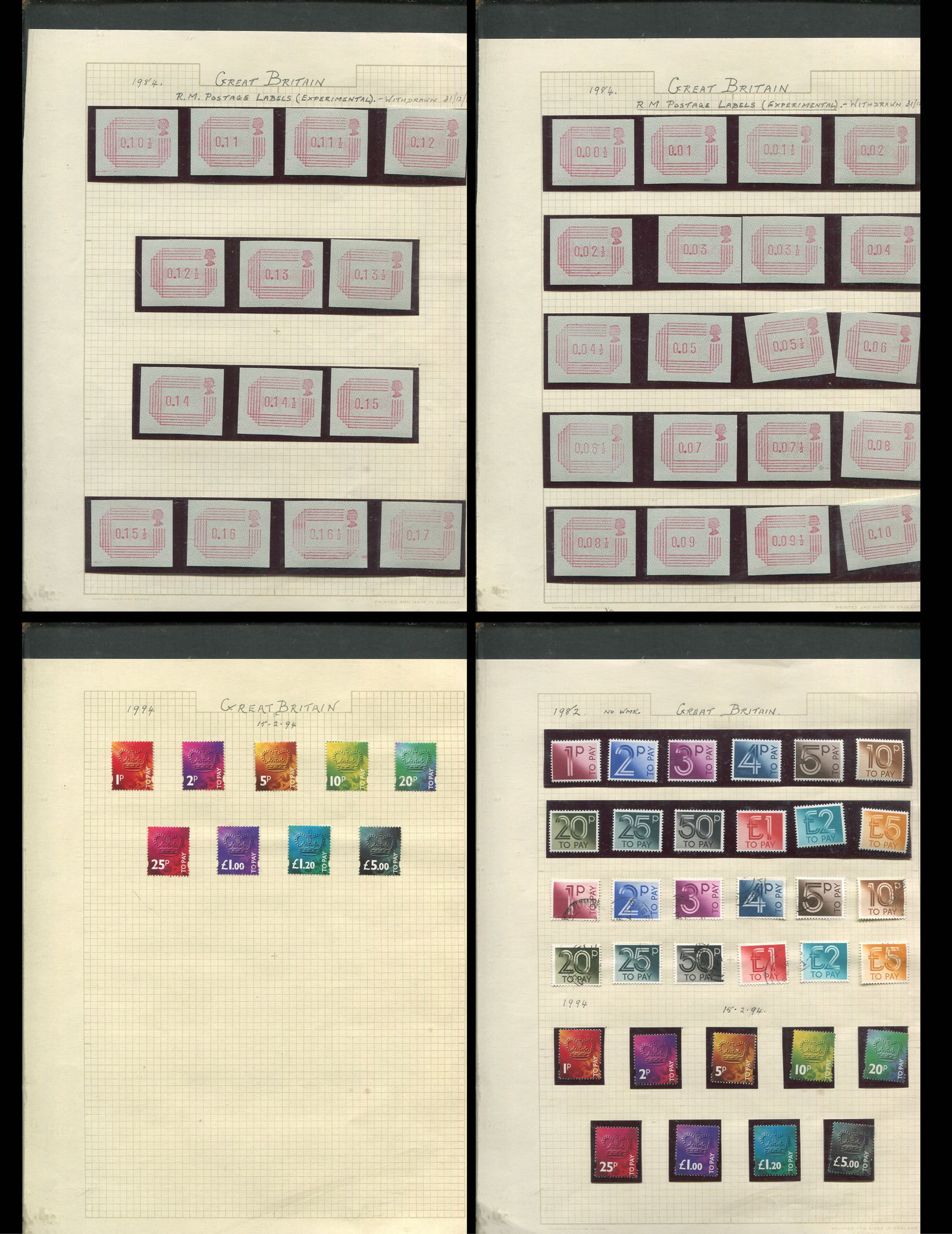 Great Britain - Postage Dues 1914 - 1994 #J1 / #J112, a mainly used collection with odd MH on leaves, also a MH group of Royal Mail Experimental Labels 1/2p to 17p, 37 labels in total, Scott value $676+, appears f-vf (Image 1)