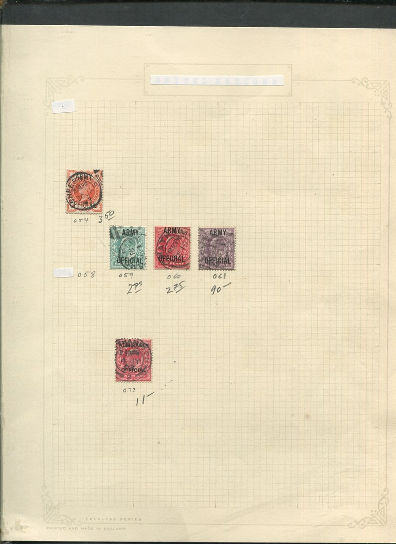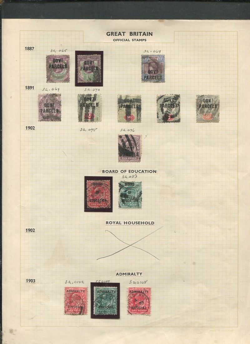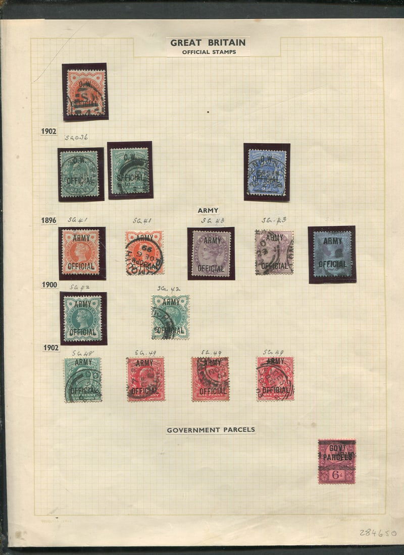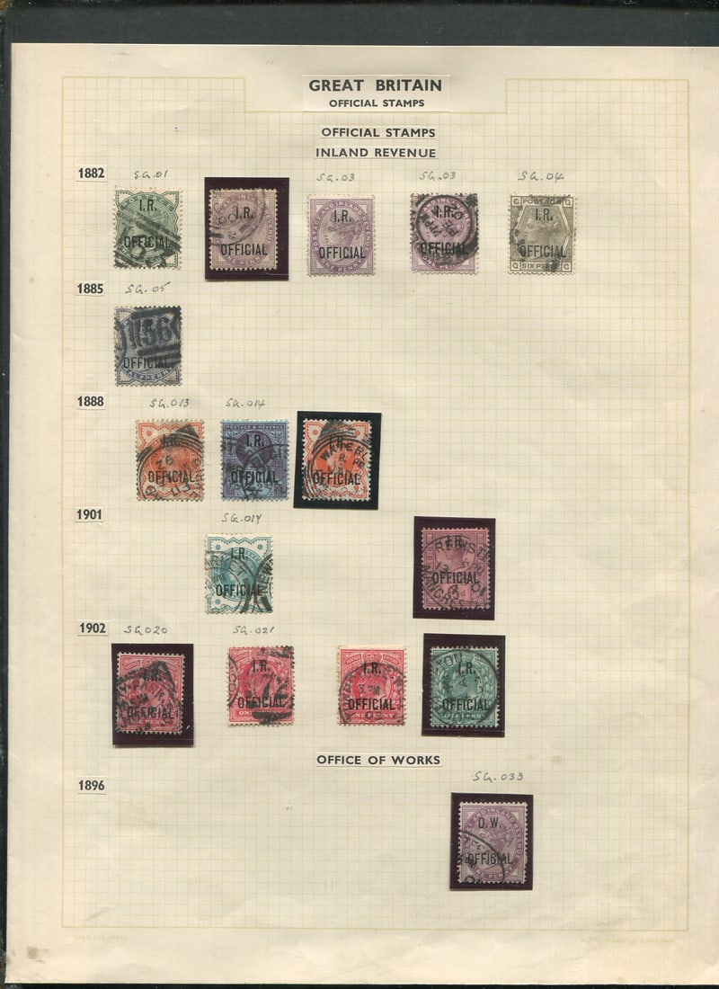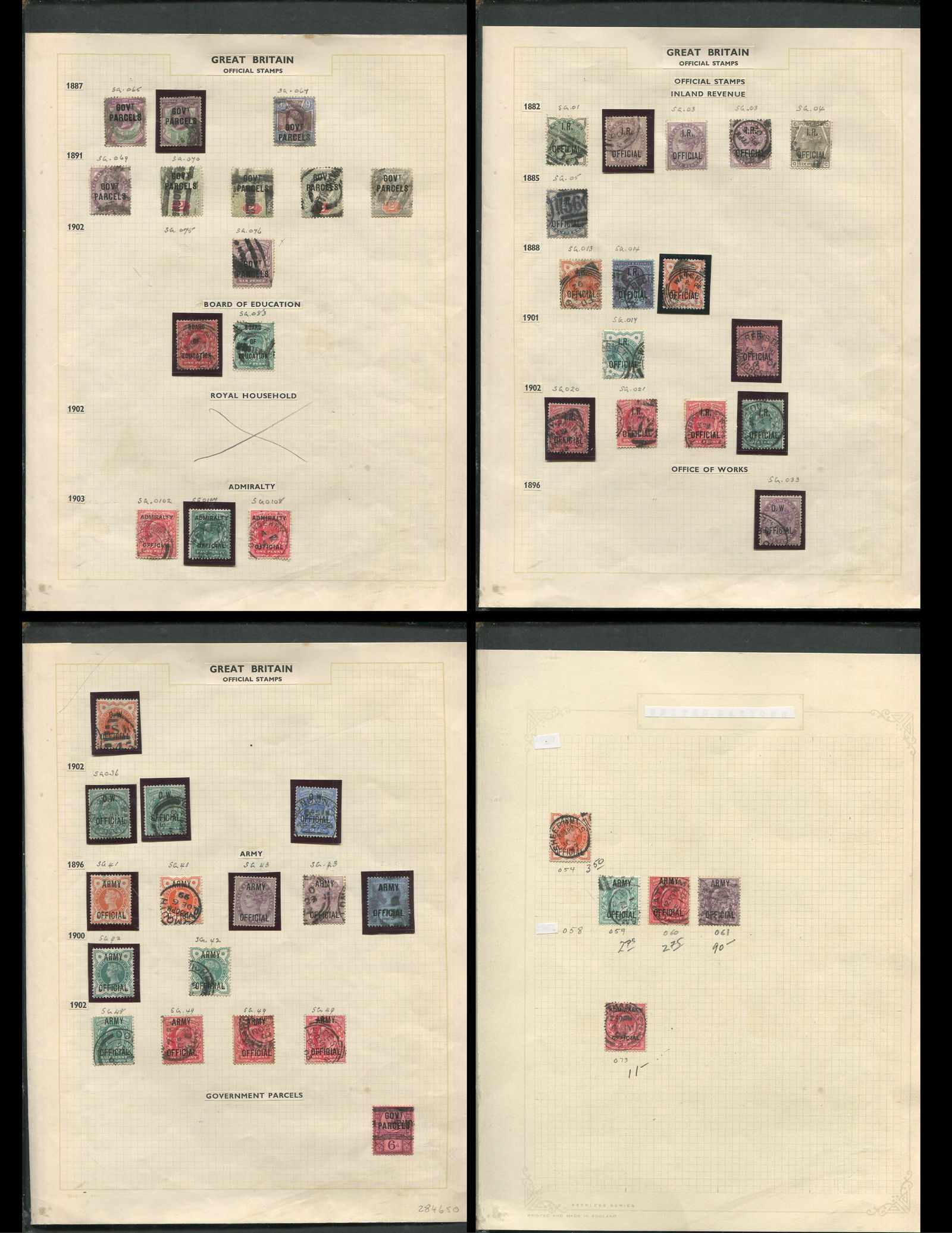 Great Britain - Officials 1882 - 1903 #O1 / #O83, a MH and used collection on three leaves, includes I.R Officials, O.W. Officials, Army Officials, GOVt Parcels, Board of Education and Admiralty, Scott value $2400, appears