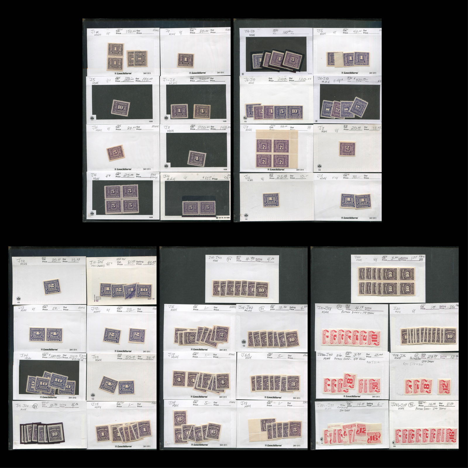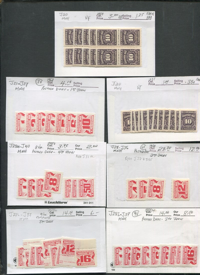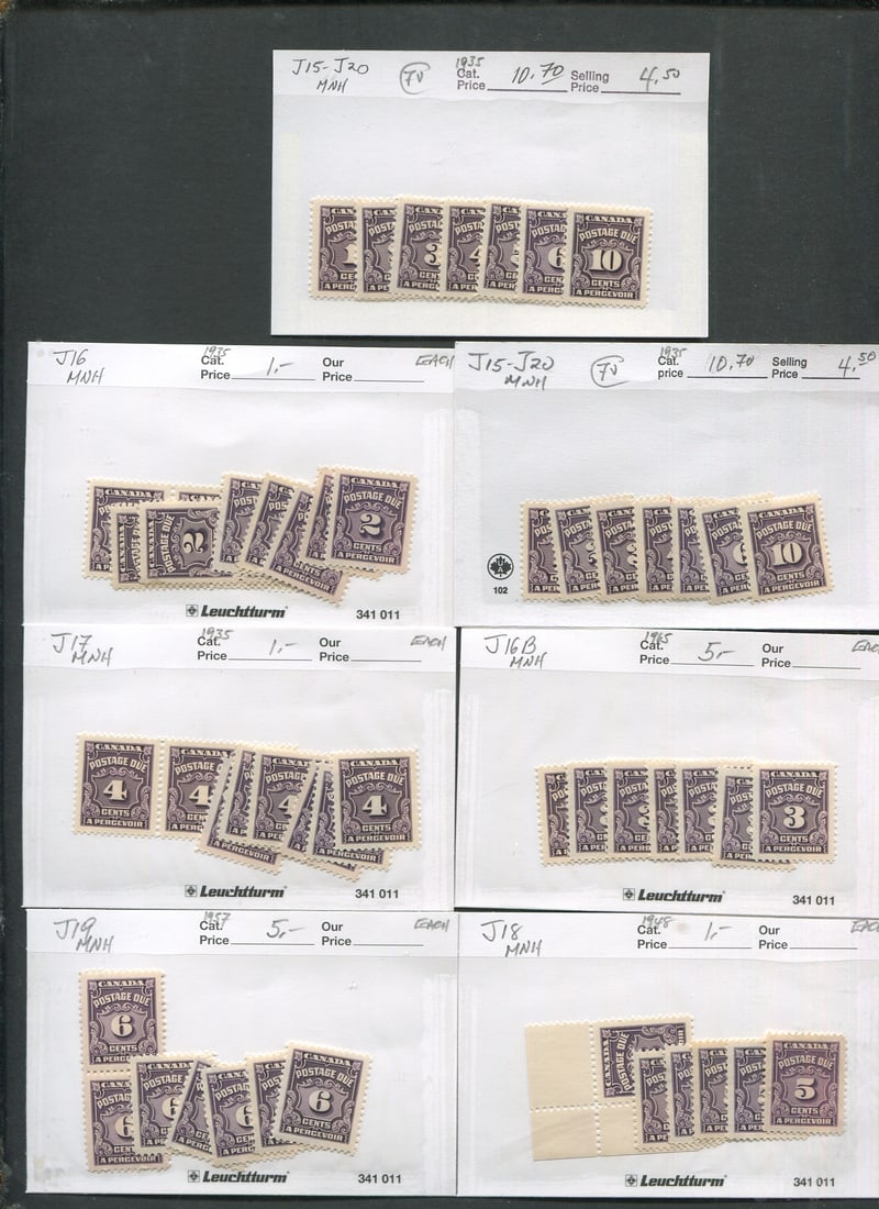 4,J11 (3), J12(3), J13 (4), J11-14, J15-20 (2 sets), J15, J16 (9), J16b, J17 (8), J19 (7), J20 ( 5 blocks), J20 (12) , J21-27, J28- 36,J28i-J37 (2) , J28-J40. Total Unitrade value over 3,000 Cnd. (Image 1)