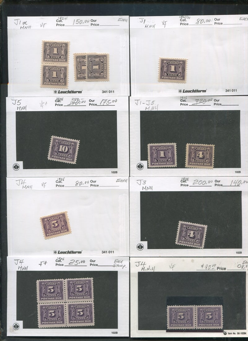 Canada 1906-1978 #J1/#J40 Postage Due Stamp Collection MNHVF. A collection of over 189 MNH postage Due stamps.Included is J1, J1 pairs (2), J1-5 set, J5 , J6-J9,J6-J10 (2), J6 (3) , J6-10 (2each $425 alone), J7, J7 block of