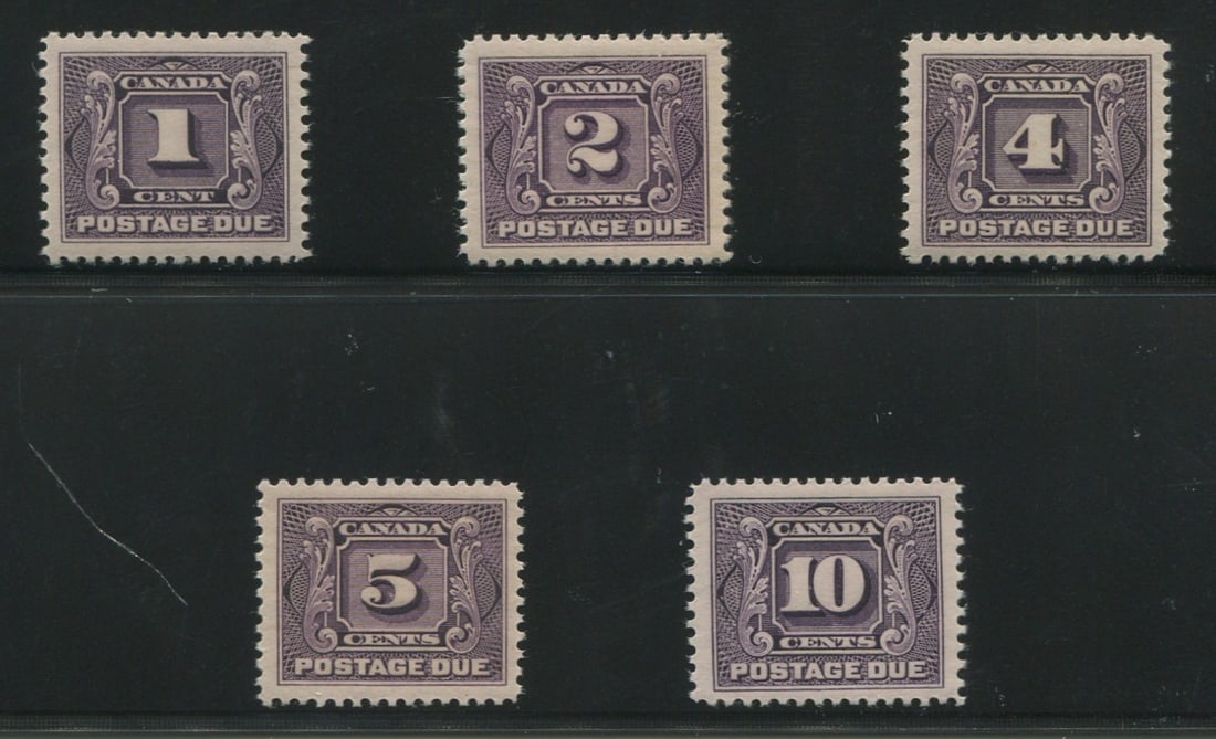 Canada 1906 -1928, #J1 - #J5 a MNH set of the first issue of Postage Dues, with fresh colour, Unitrade value $720 CND (S514.29 USD) appears f-vf (Image 1)