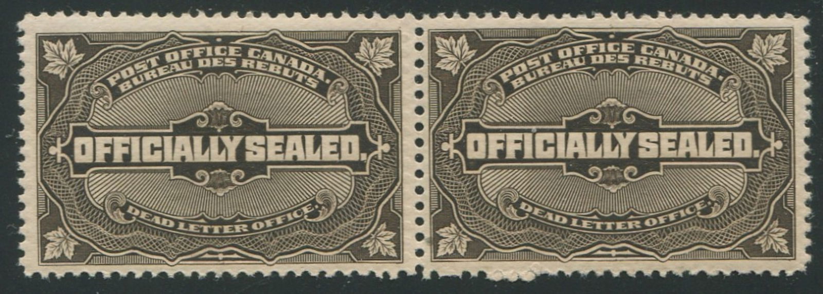 Canada 1879-1913 #OX4 brown black, a MNH pair,Unitrade value $600 ($428.57 USD) appears f-vf (Image 1)
