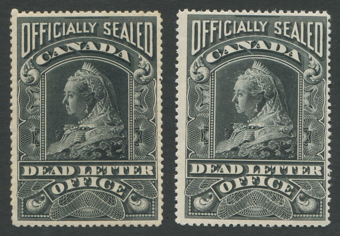 Canada 1907 #OX3 Officially Sealed Dead Letter Office Revenue Stamps MNH. 2 #OX3 Dead Letter Office Revenue stamps, 1 with a Green Foundation Cert, both MNH , very attractive Victoria stamps. Cat value $1,200 Cnd. (Image 1)