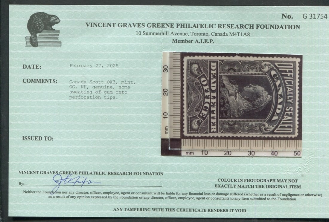 Canada OX1 dead letter VF MH Unitrade $750.00, USD $525.00 (Image 1)