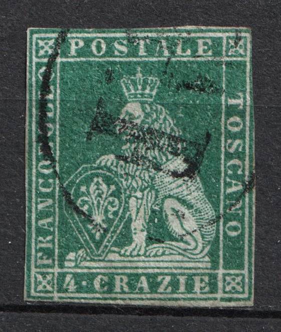469 Used image1853-55 4c Tuscany, Italy, Michel 6 y b, Catalog value $120 (Image 1)