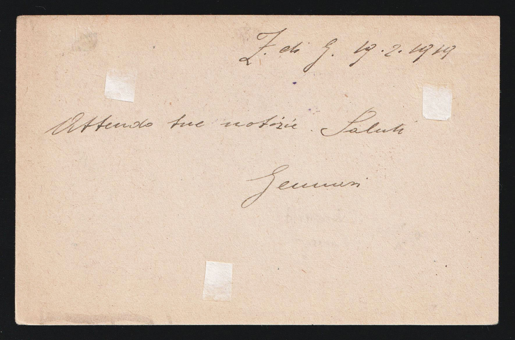 472 image1919 (20 Feb) Trentino, Italy, Italian Occupation, World War I, Military Mail Censored Postcard to Berlin (Germany), franked with 40c and 50c, with Violet Handstamp, Scott N57, N59, (Image 1) (Image 2)