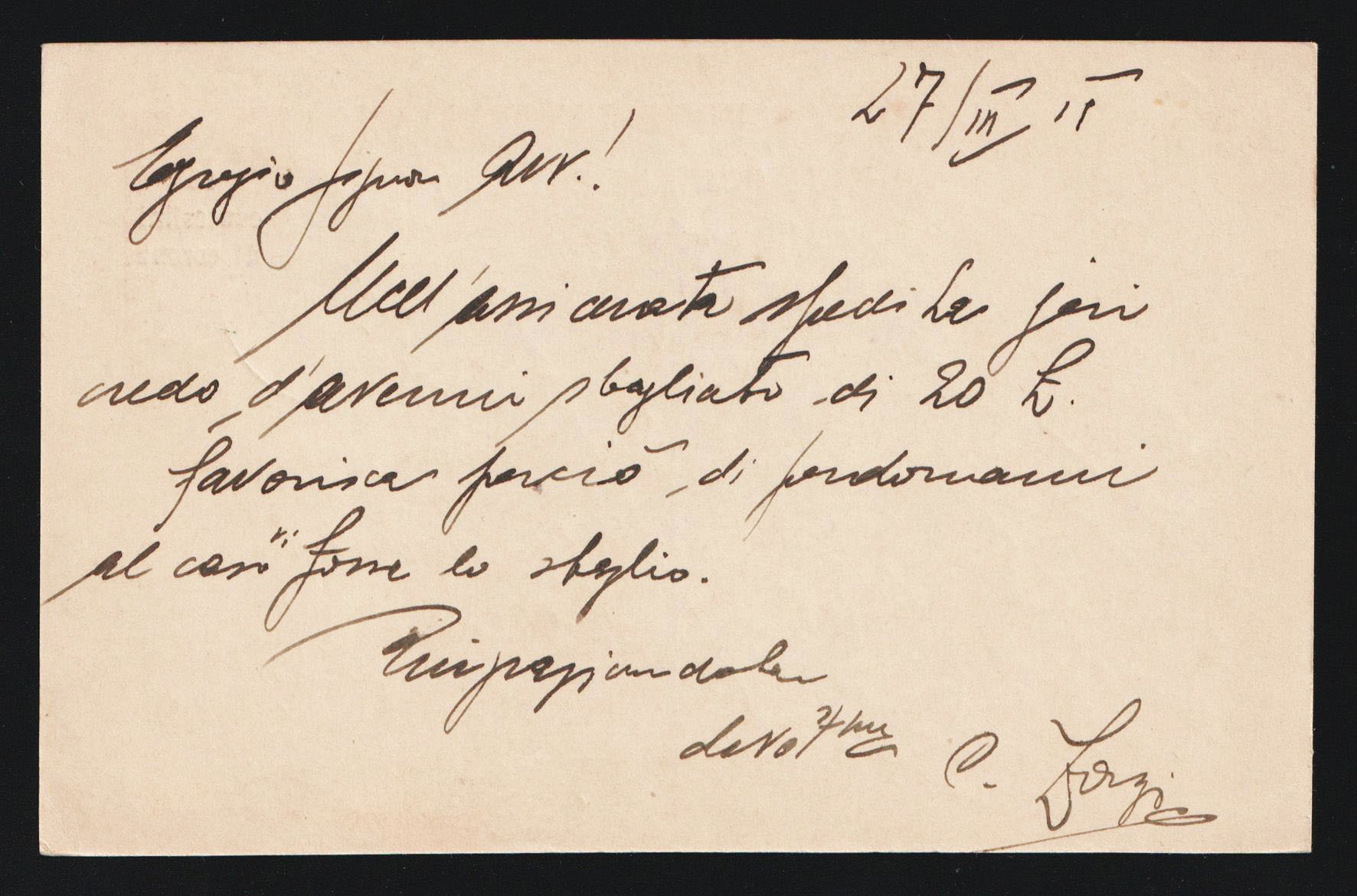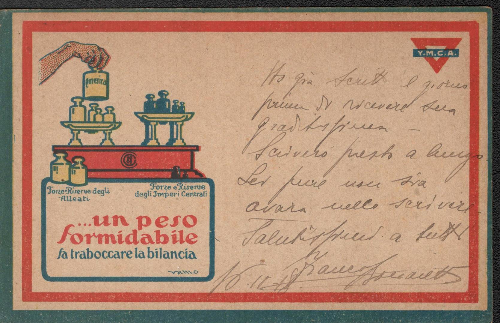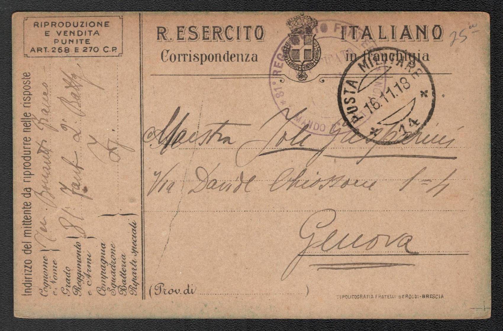 473 image1919 (16 Nov) Italy, World War I, Military Mail Postcard to Genoa, with Violet Handstamp (Image 1) (Image 2)