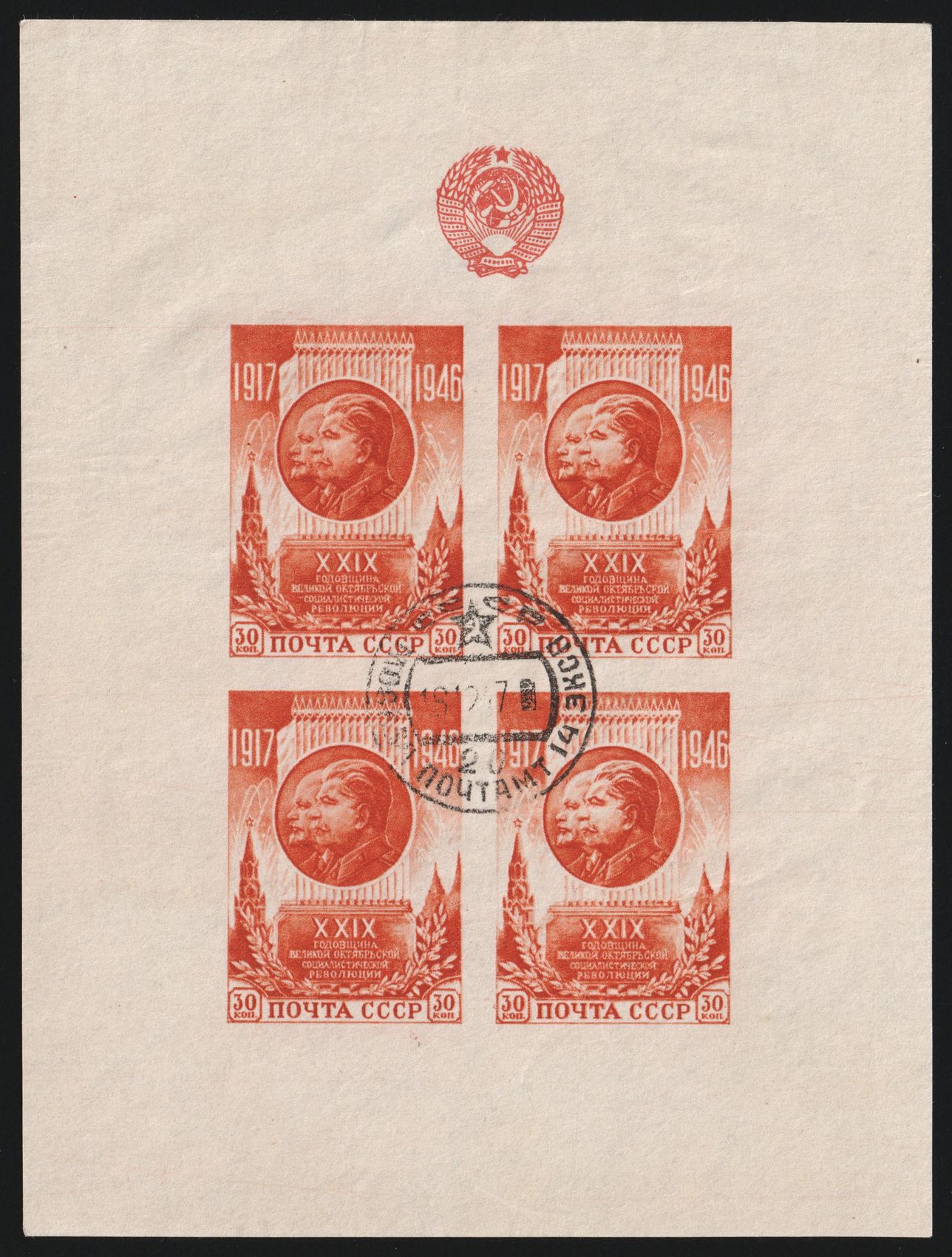 6067 Used image1946 October Revolution, Soviet Union USSR, Soviet Union, USSR, Russia, Souvenir Sheet (Image 1)
