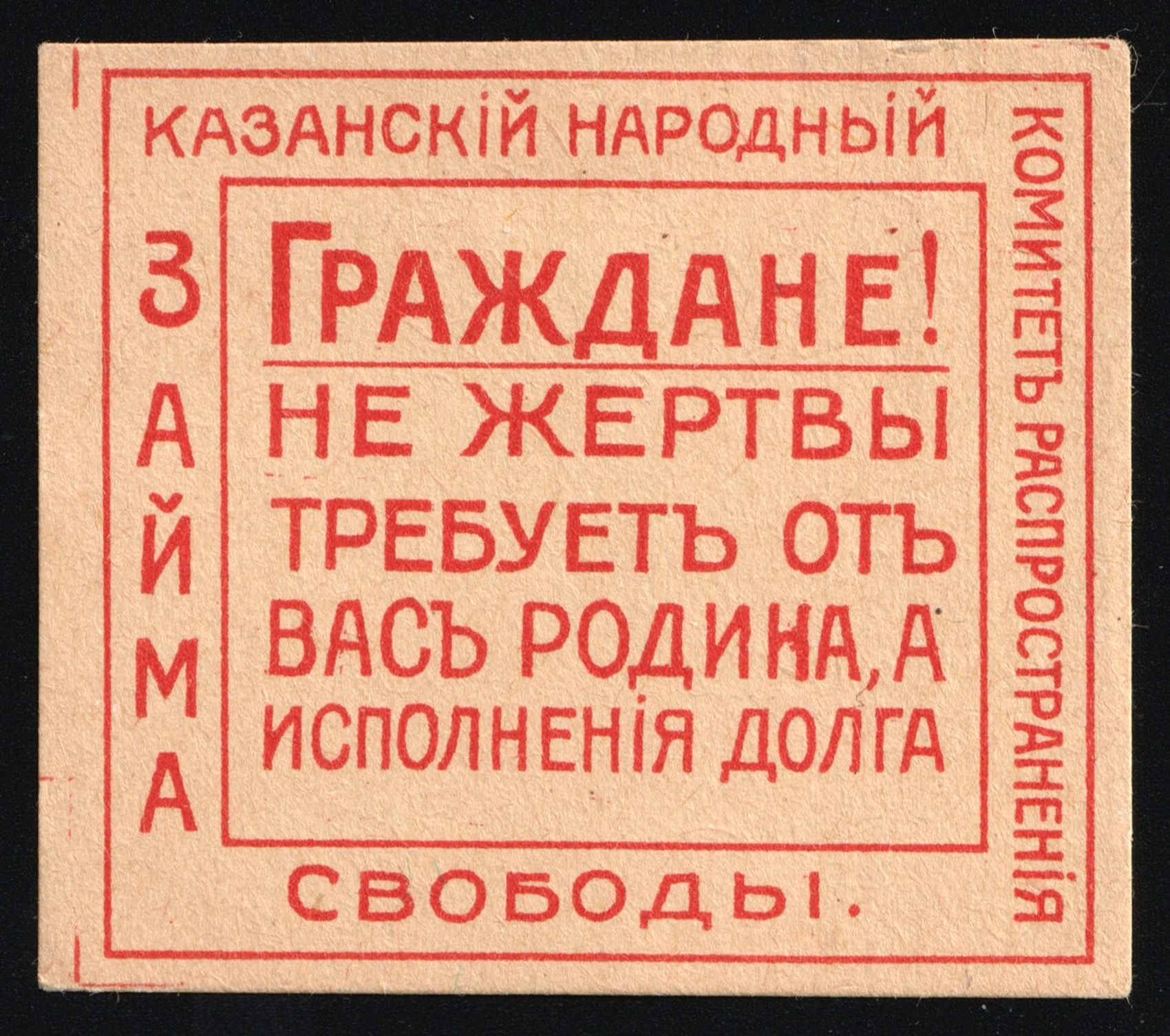 6572 No image1917 Kazan Loan of Freedom Kazan Committee, Kazan Peoples' Freedom Loan Propaganda Committee - Free Citizens of the Russian Land!, Russian Empire