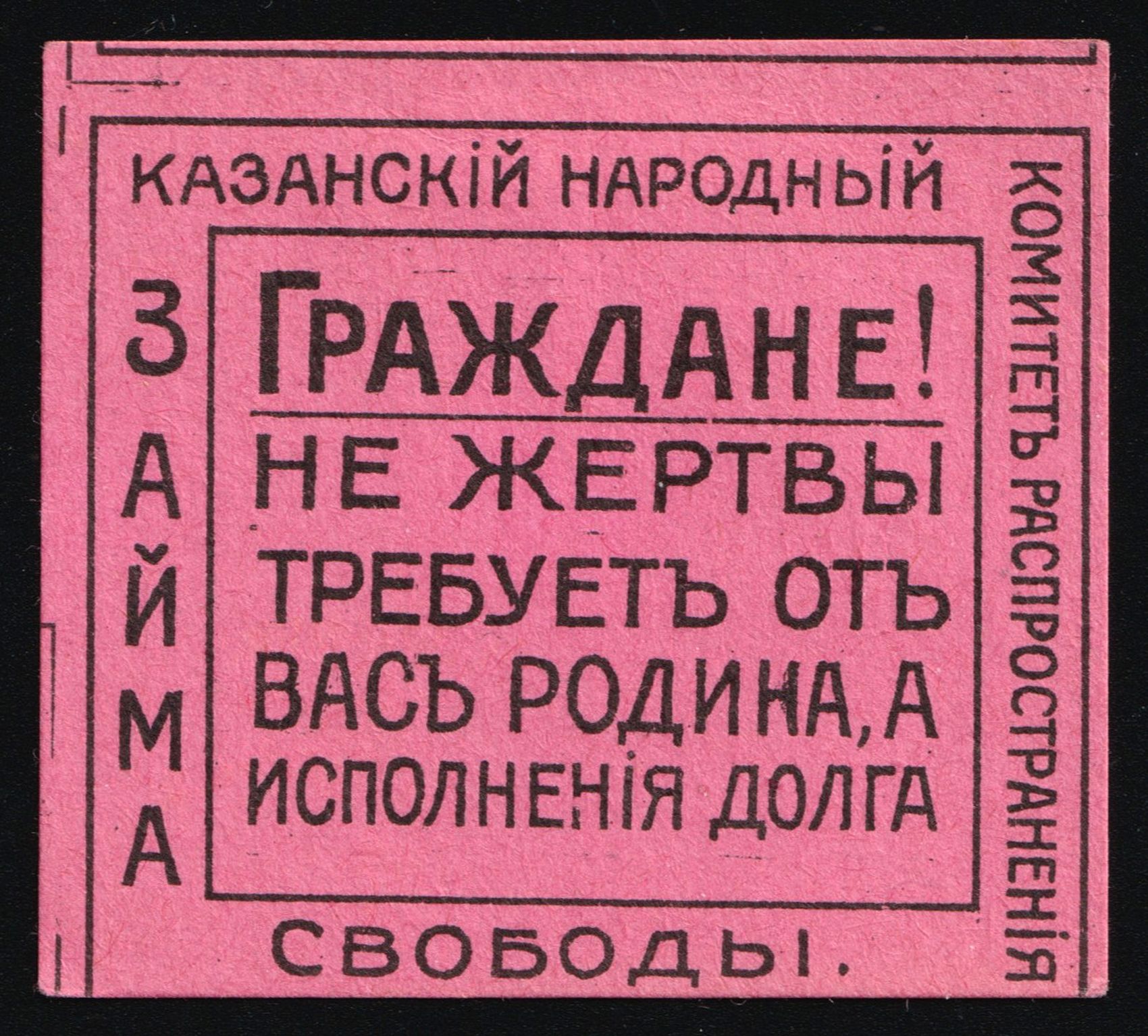 6574 No image1917 Kazan Loan of Freedom Kazan Committee, Kazan Peoples' Freedom Loan Propaganda Committee - Free Citizens of the Russian Land!, Russian Empire
