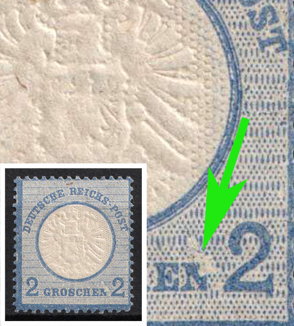894 MNH image1872 2gr German Empire, Large Breast Plate, Germany (White Spot Above 'N' in 'GROSCHEN'), Michel 20 var, (Image 1) (Image 2) (Image 3)