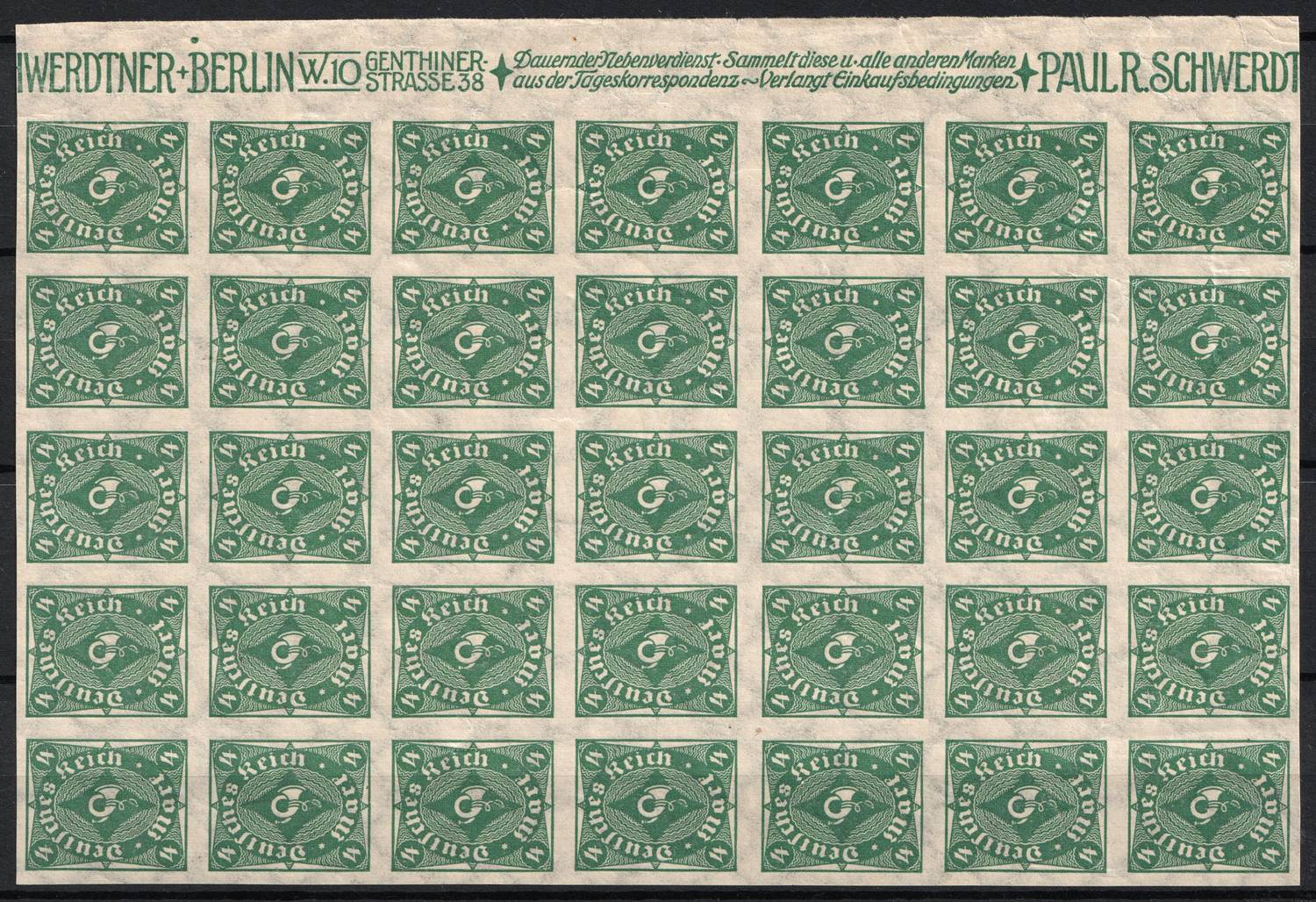 1040 MNH image1922 German Reich, Full Sheet, (Imperforate, Signed, Margin), Michel 226aU, Catalog value $4200 (Image 1) (Image 2)