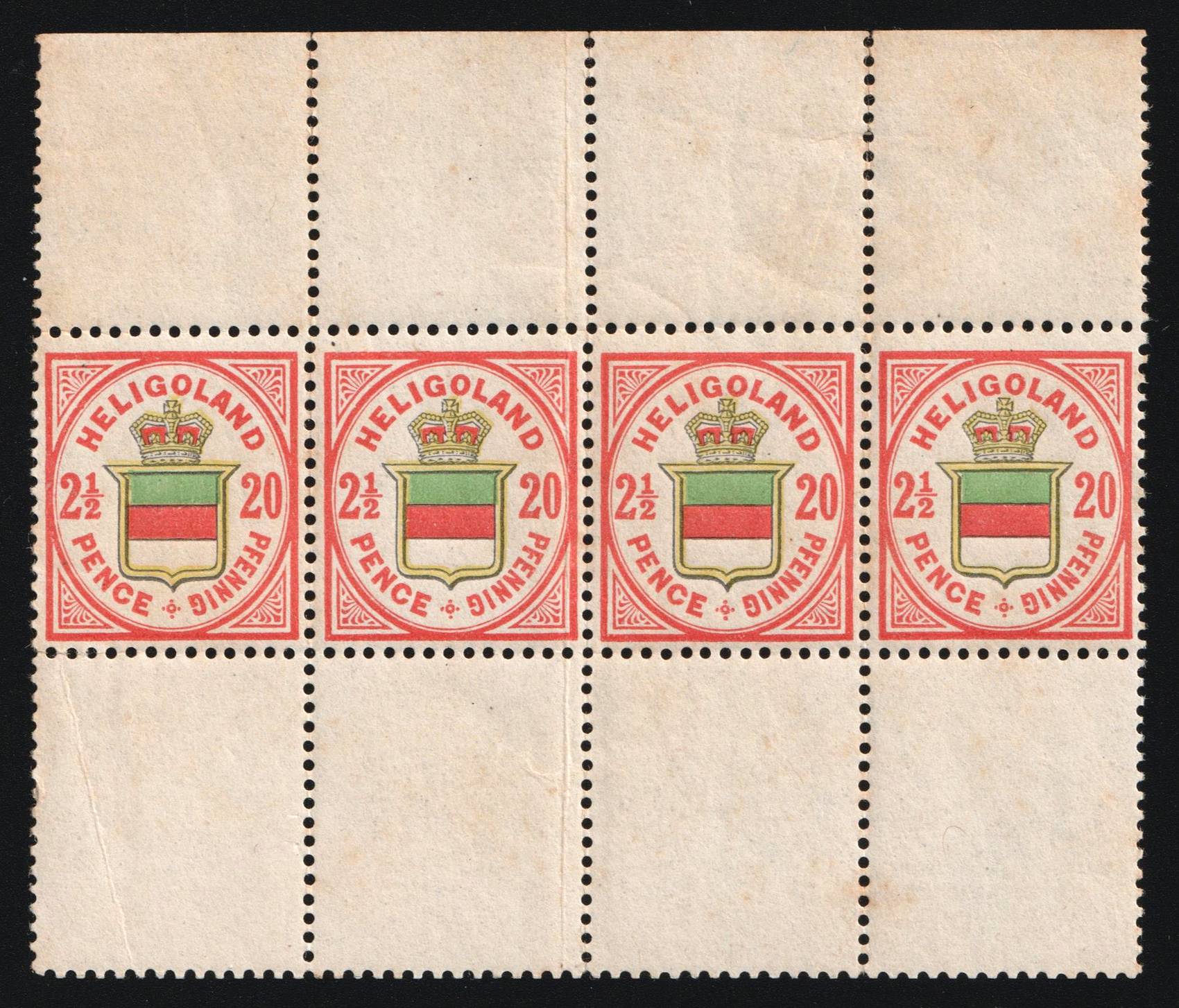 1382 MNH image1877 2 1/2f on 20pf Heligoland, German States, Germany, Strip (Margin), Michel 18 g, Catalog value $130 (Image 1)