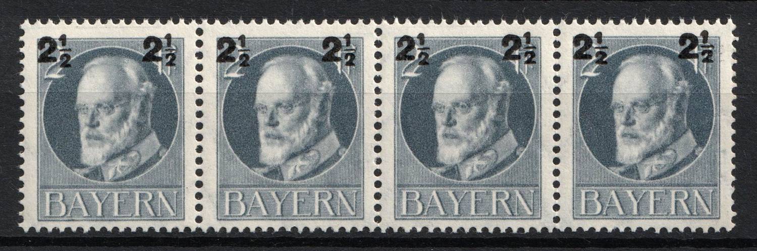 1383 MNH image1916 2 1/2pf, German States, Bavaria, Germany, Strip (Signed), Michel 111 Aa, Catalog value $95 (Image 1) (Image 2)
