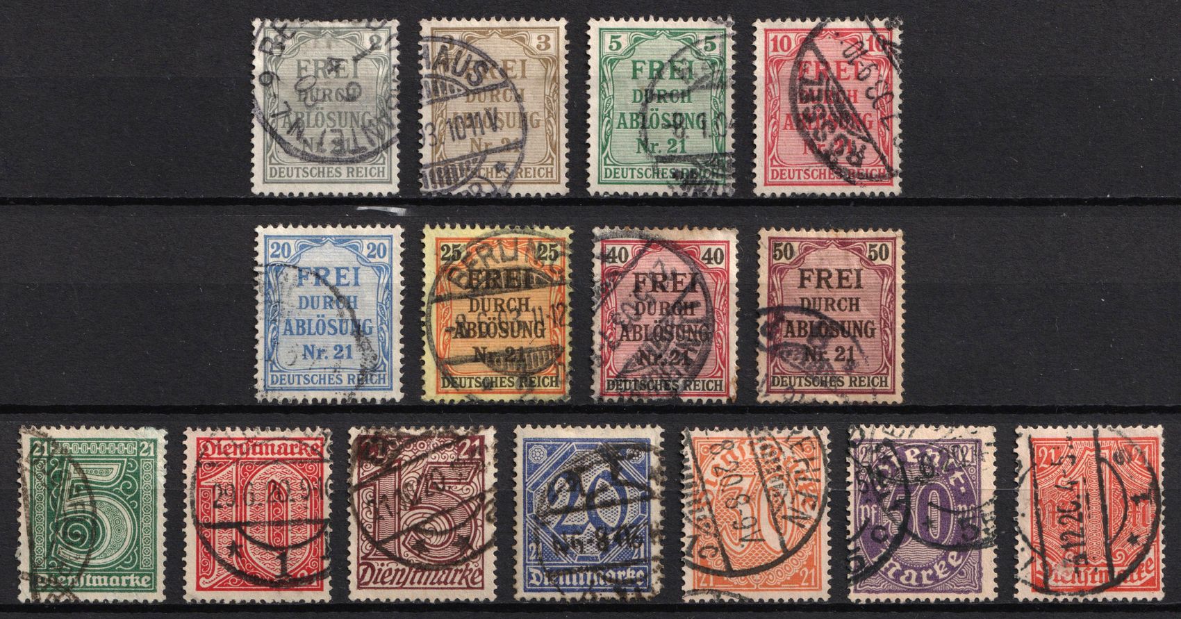 1518 Used image1920-23 Weimar Republic, Germany, Official Stamps (Full Sets), Michel 23 - 33, 69 - 74, Catalog value $80 (Image 1)