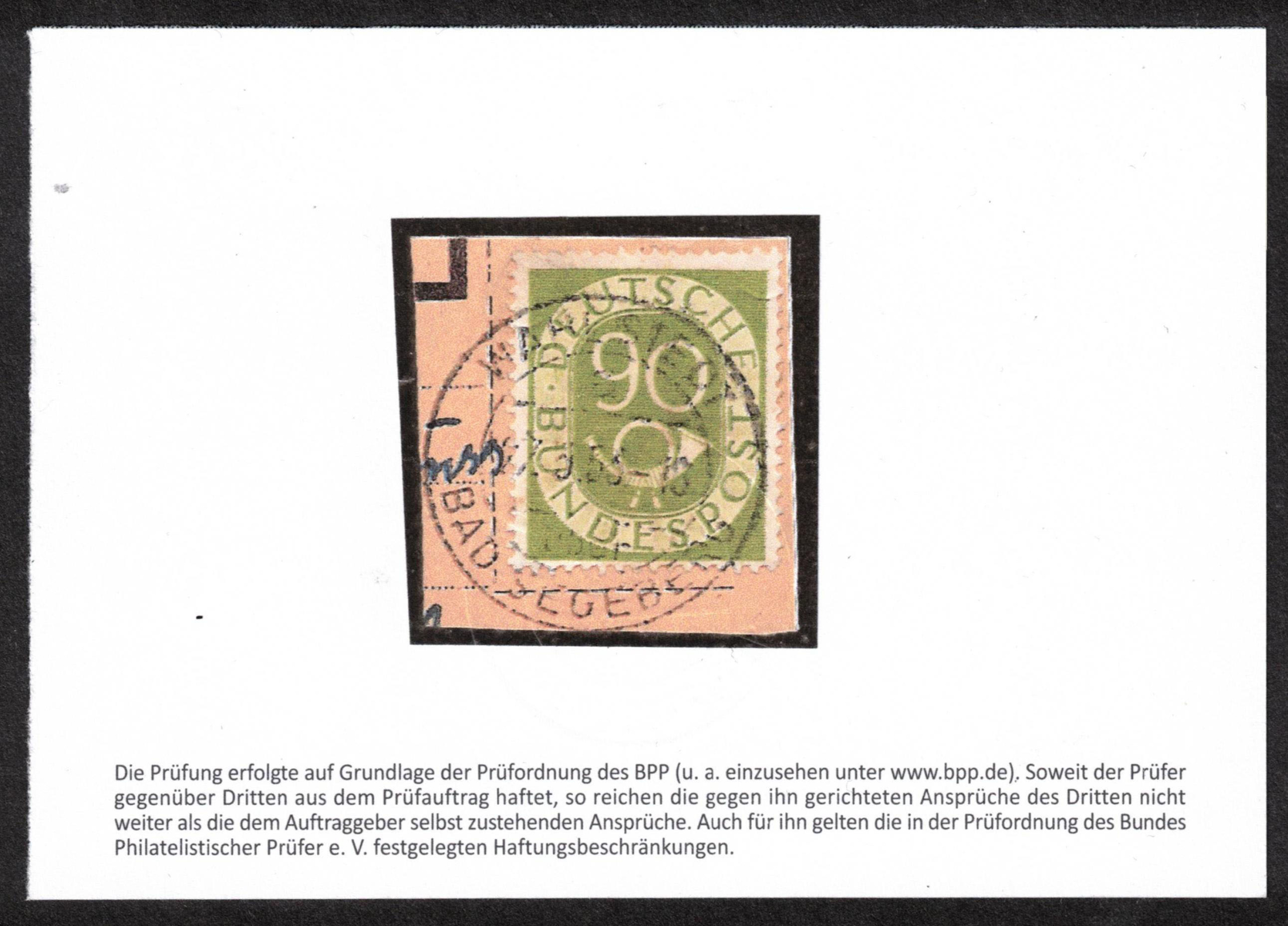 2185 Used image1952 90pf on cover piece, German Federal Republic, Germany (Two Green Lines near the 'D', Current Certificate Schlegel, RARE), Michel 138 PF II, Catalog value $950 (Image 1) (Image 2) (Image 3)