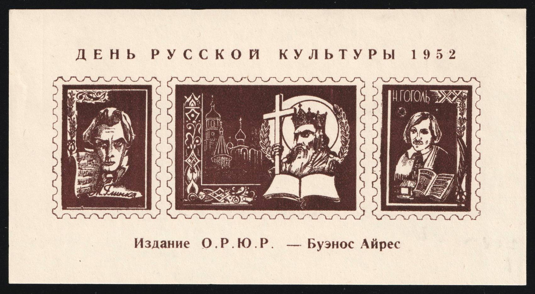 3693 MNH image1952 'Russian Culture Day', ORYuR Scouts, Argentina, Russia, DP Camp, Displaced Persons Camp, Souvenir Sheet (Image 1)