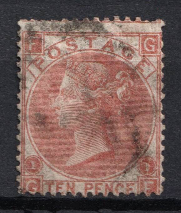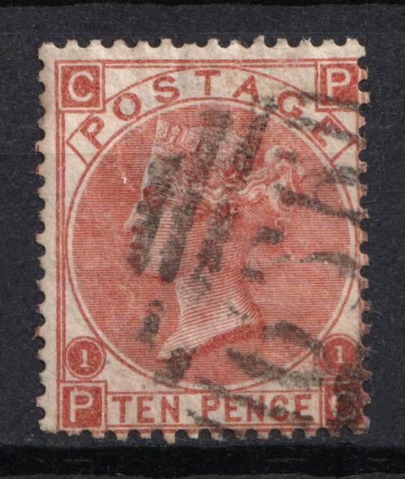 1867 10d Great Britain (Plate 1), Stanley Gibbons 114, Catalog value $560 (Image 1)