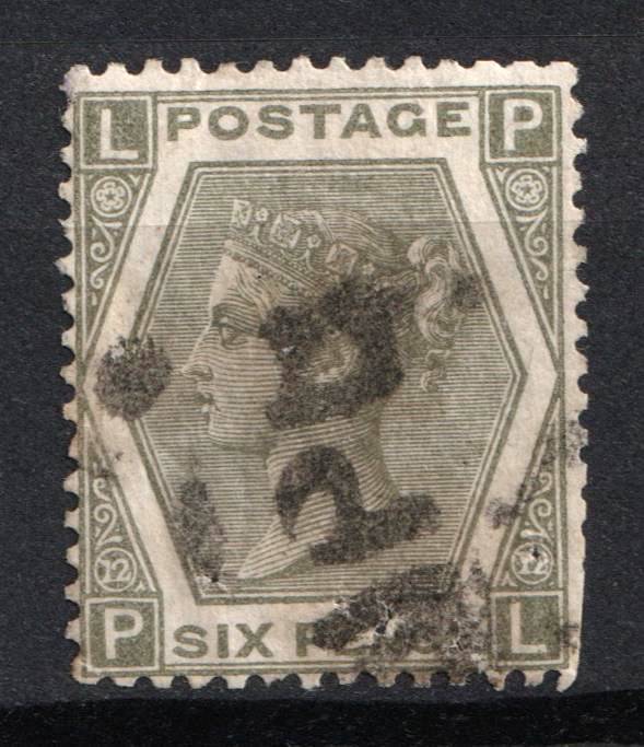 1868 6d Great Britain, Stanley Gibbons 108, Catalog value $265 (Image 1)
