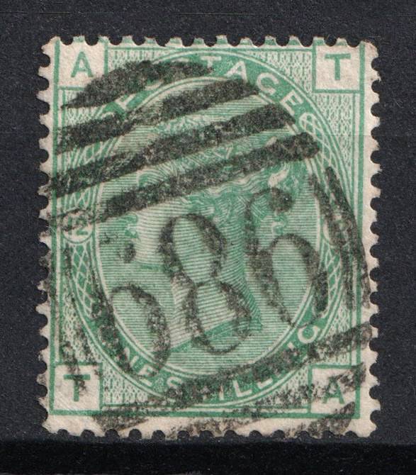 1875 1S Great Britain (Plate 12), Stanley Gibbons 150, Catalog value $225 (Image 1)