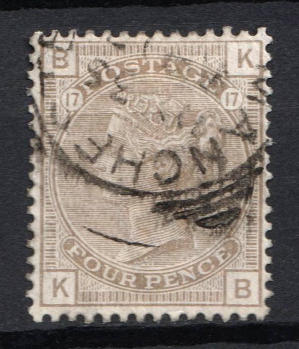 1880 4d Great Britain (Plate 17), Stanley Gibbons 160, Catalog value $110 (Image 1)