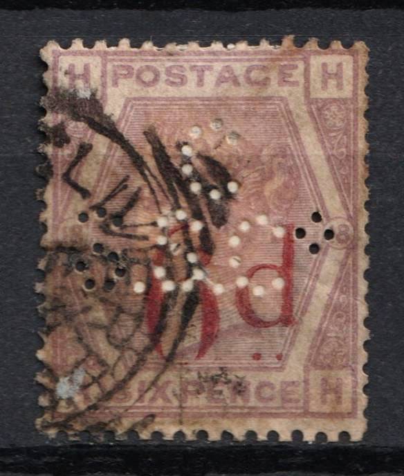 1883 6d on 6d Great Britain (Perfin), Stanley Gibbons 162, Catalog value $210 (Image 1)