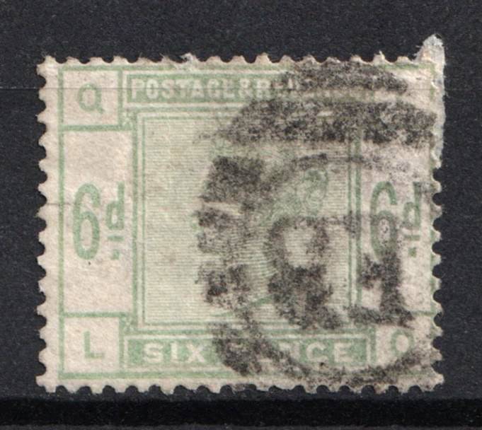 1867-1880 6d Great Britain, Stanley Gibbons 106, Catalog value $295 (Image 1)