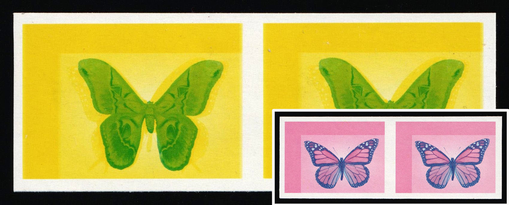 587 No image1997 Republic of Honduras, Airmail, Pair, Trial Color Proof, Double-Sided Printing, Imperforate. No gum (*) | Michel 1337, 1342 var