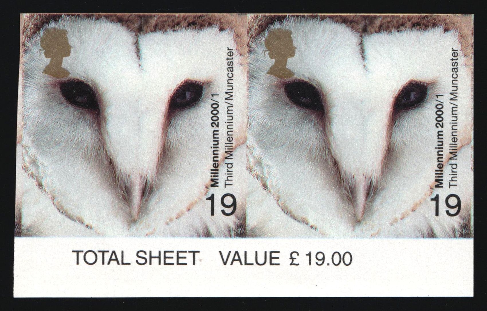 1154 No image2000 19p Great Britain, Pair, Imperforate, Margin, Sheet Inscription. No gum (*) | Michel 1844U / CV $1920
