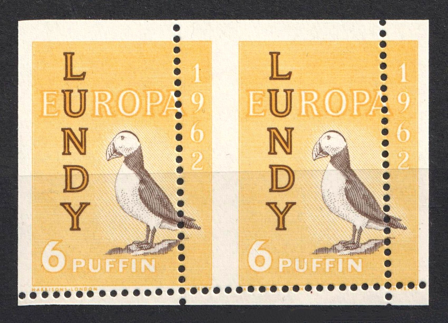 1160 MNH image1961 6p Lundy Island, Great Britain, Pair, Local, Private Issue, Shifted Perforatioon. MNH (Image 1)
