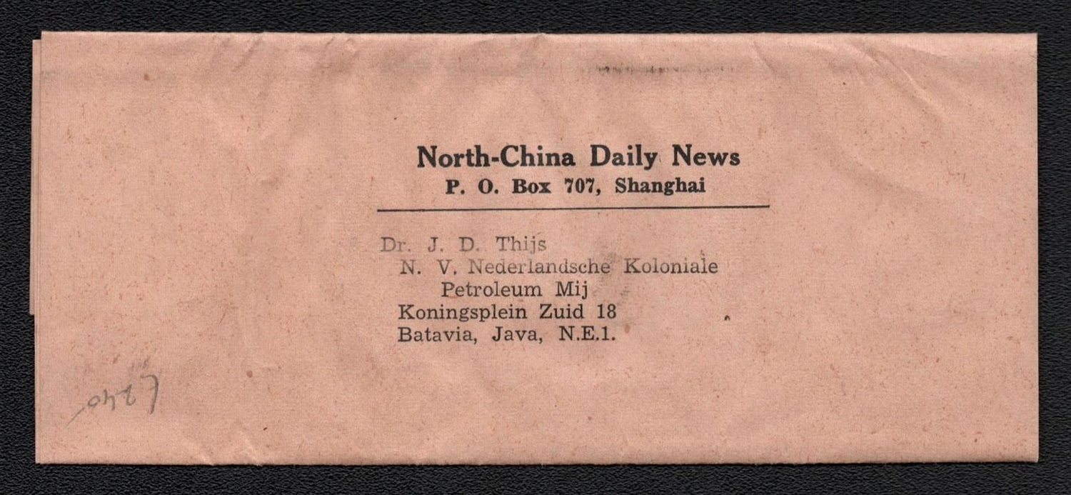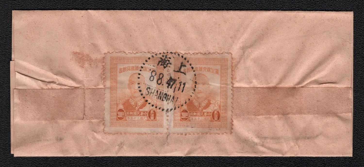 1629 image1947 (8 Aug) China, Shanghai, Local, Post wrapper, 'North-China Daily News', with 200s of pair. | Michel 769 A (Image 1) (Image 2)