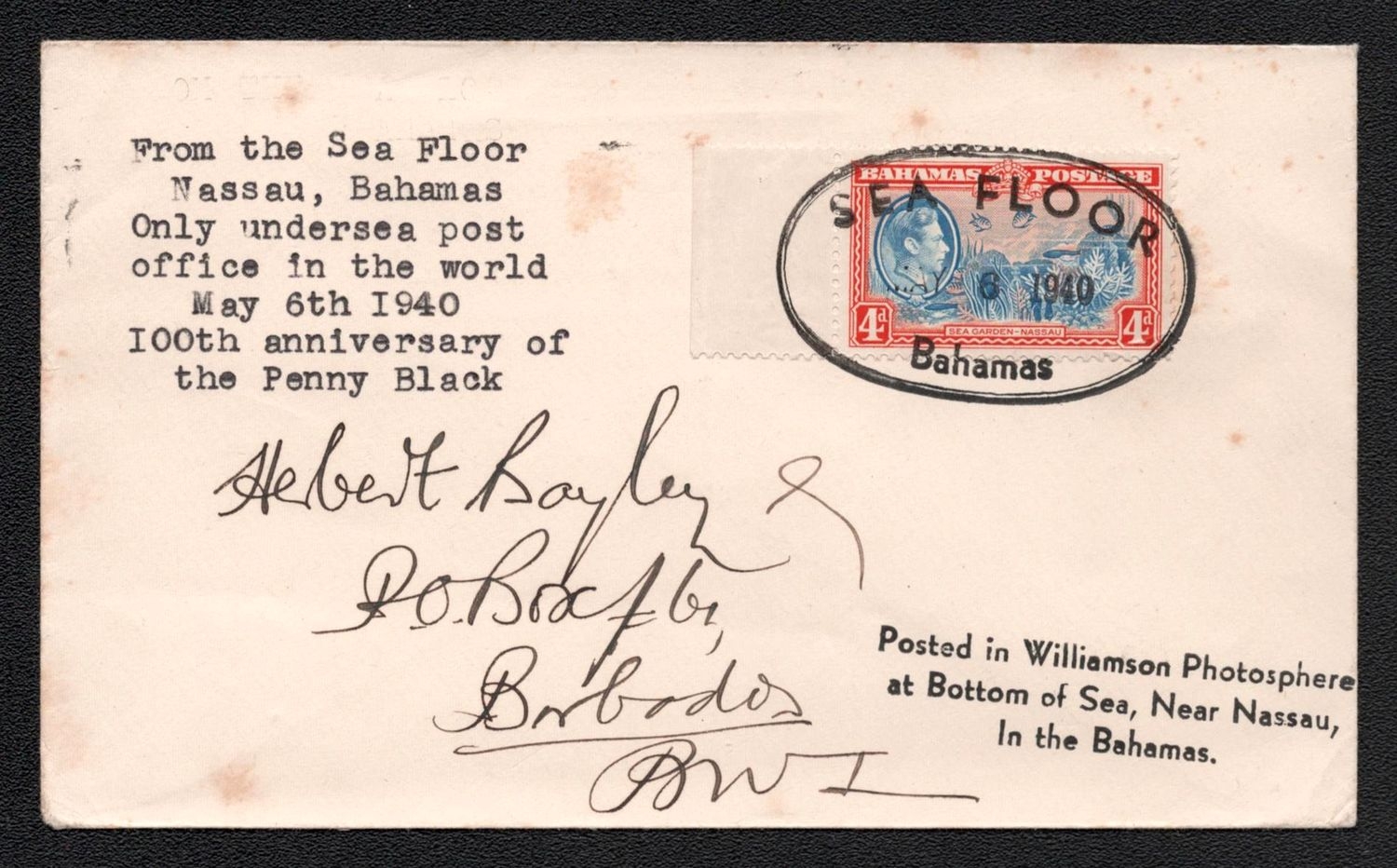 1743 image1940 (6 May) Bahamas Cover 'Sea Floor' from Nassau (Bahamas) to Bridgetown (Barbados), franked with 4p, with black handstamp. | Michel 113 (Image 1) (Image 2)