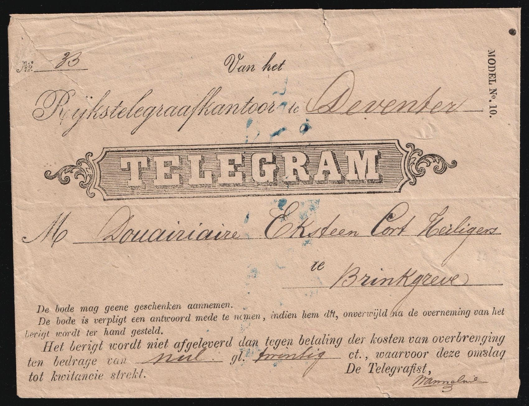 Netherlands, Official Postal Envelope for delivering Telegram from State Telegraph Office locally addressed in