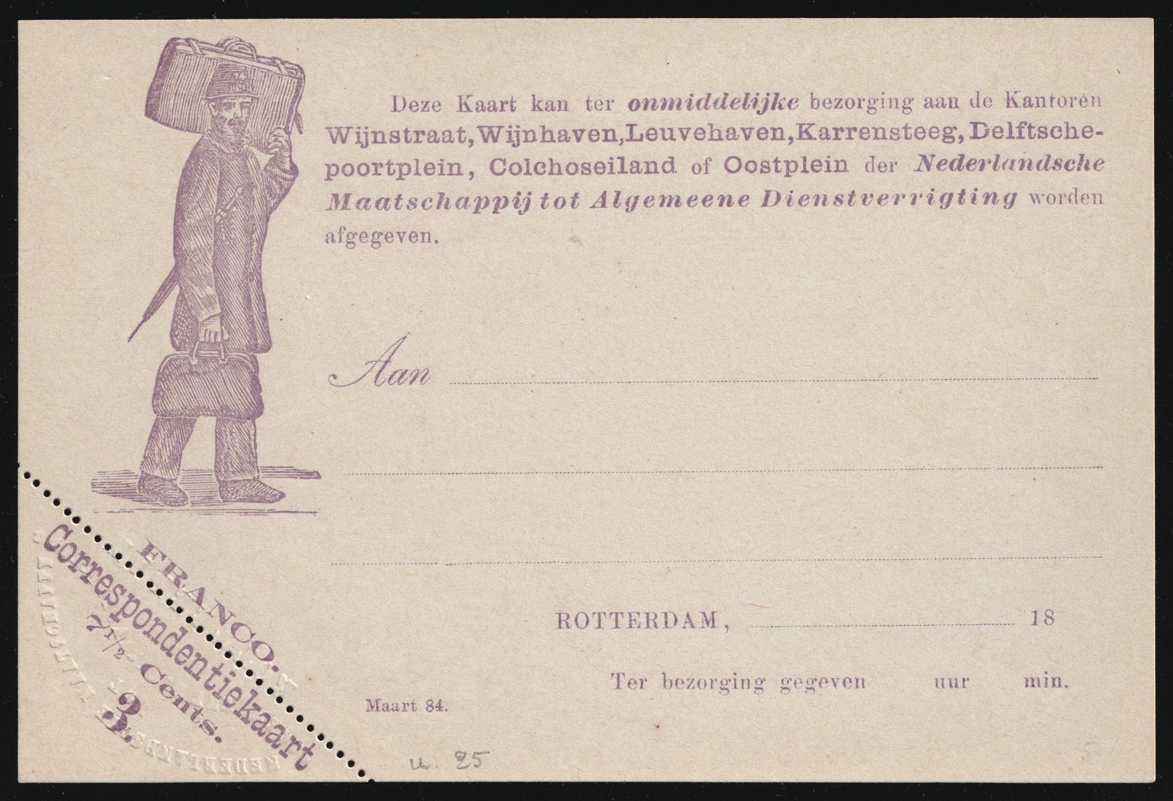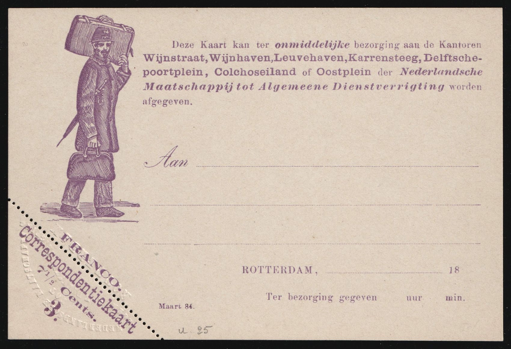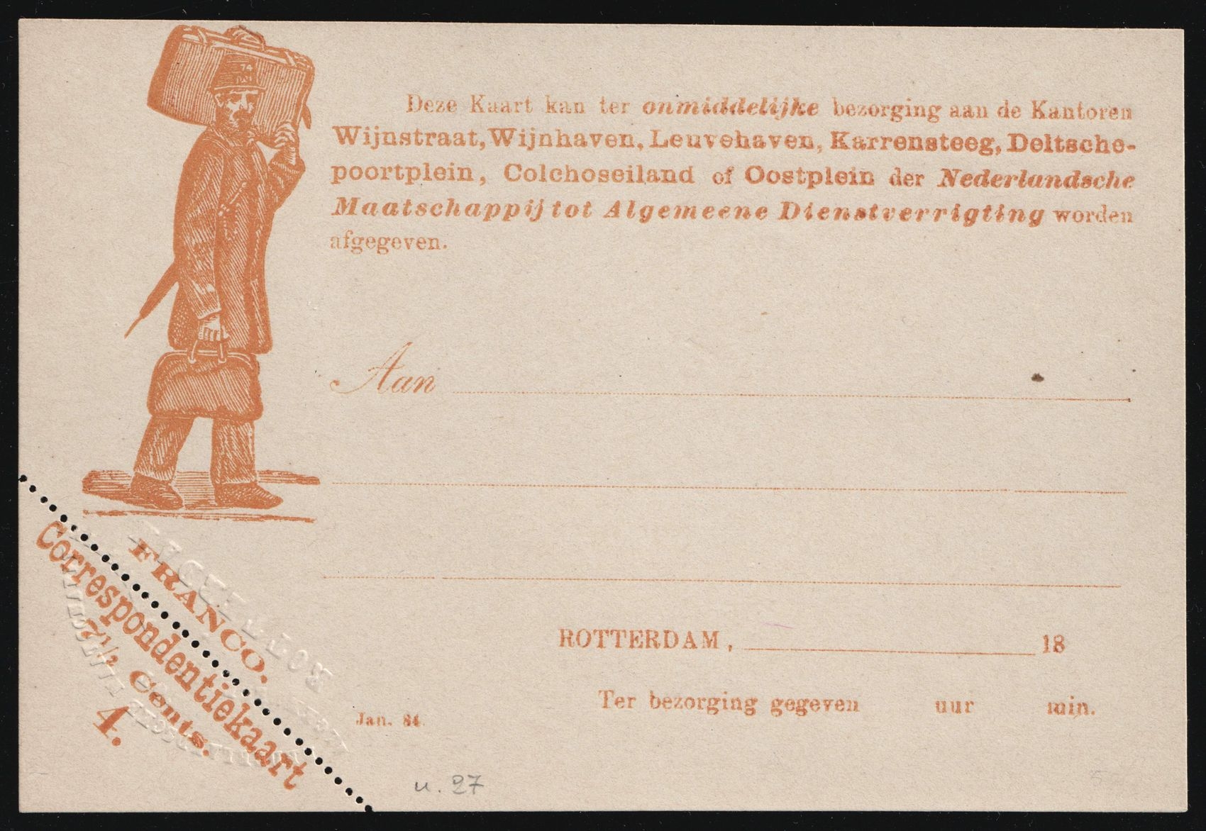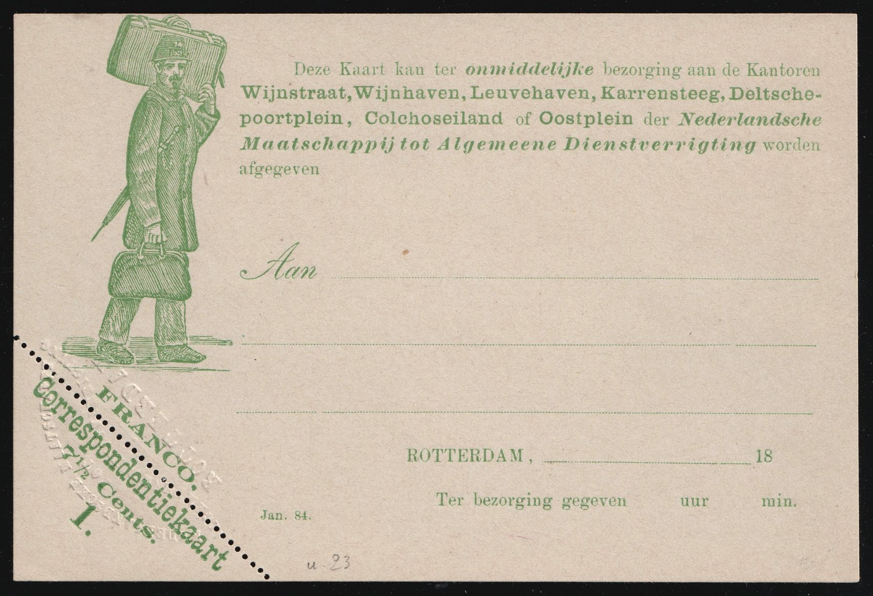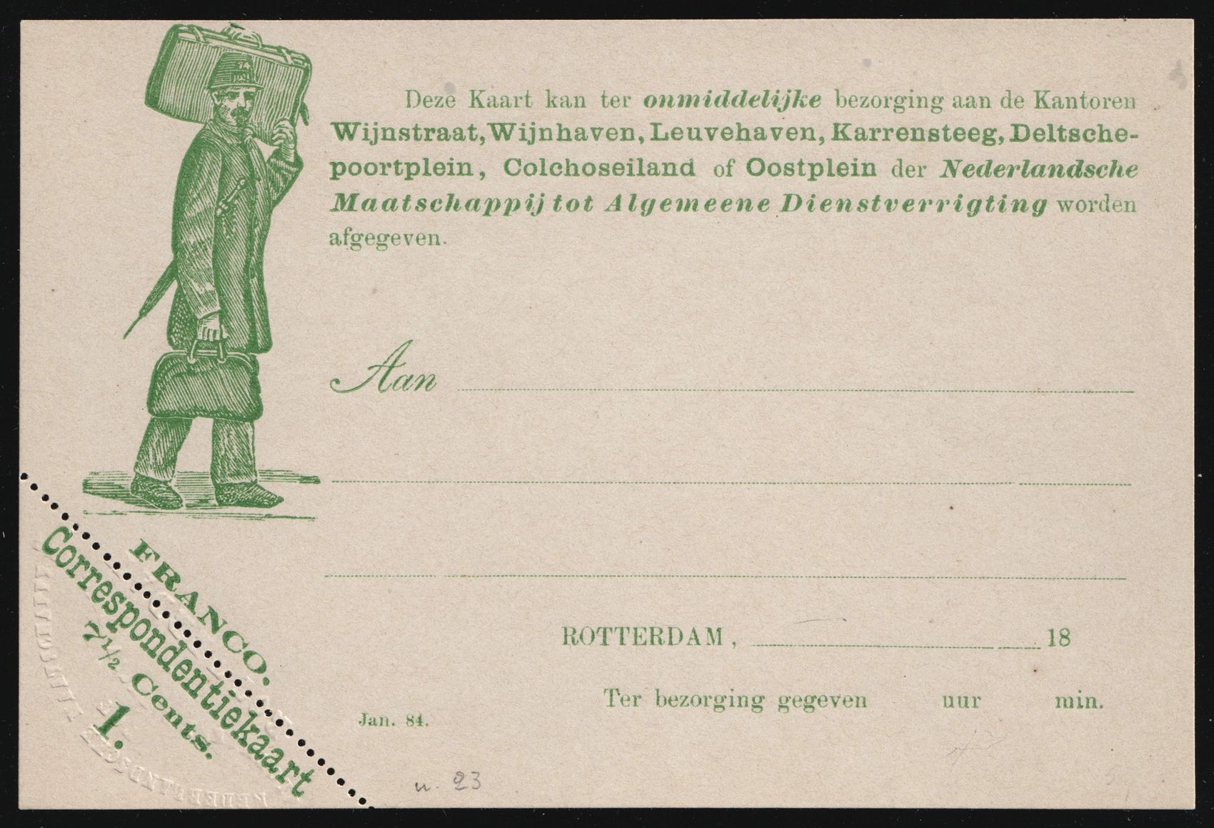 1884 (Jan) 1c Netherlands, Local Delivery Postcard for Immediate Delivery within the city by a Private Courier