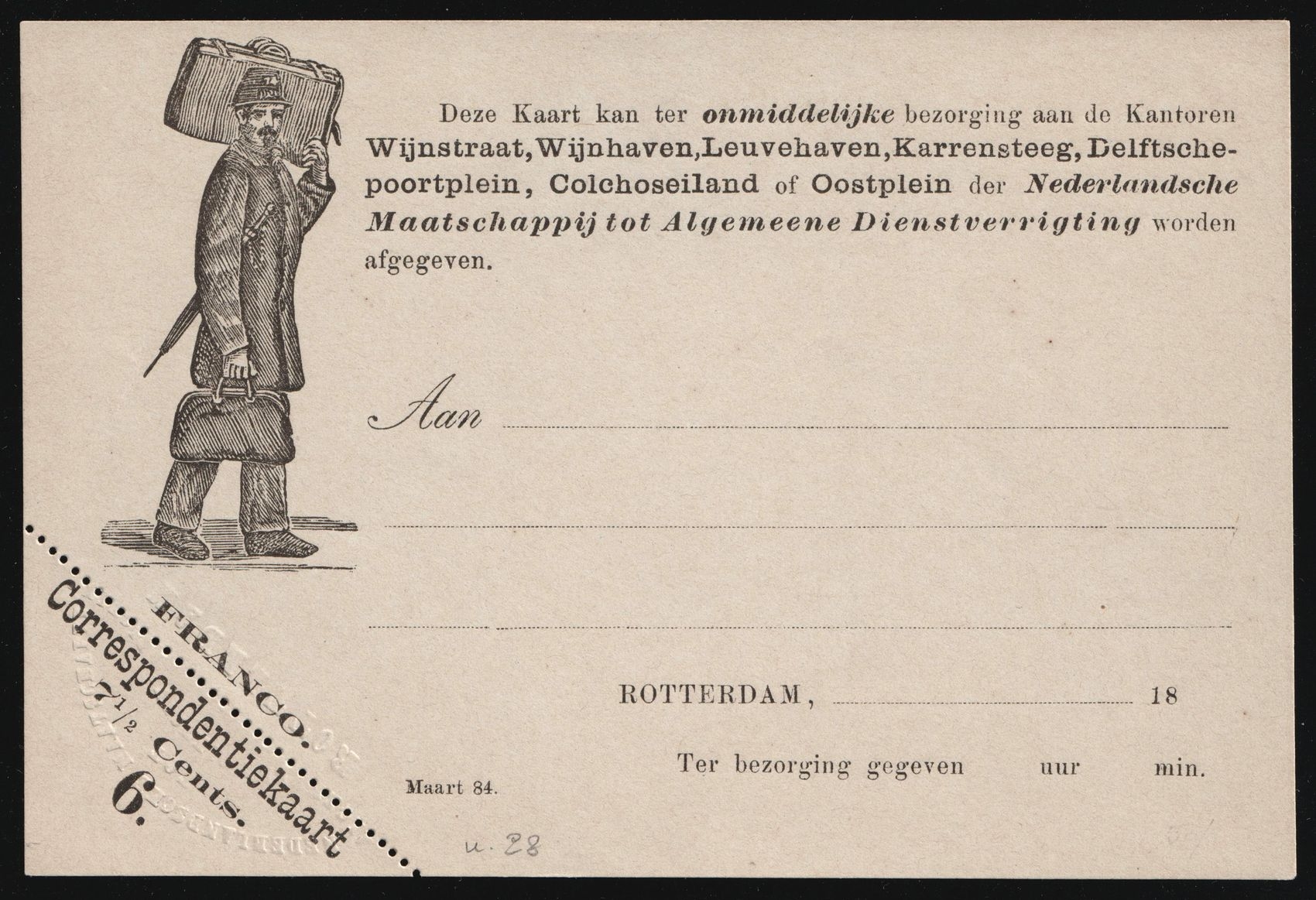 1884 (Mar) 6c Netherlands, Local Delivery Postcard for Immediate Delivery within the city by a Private Courier