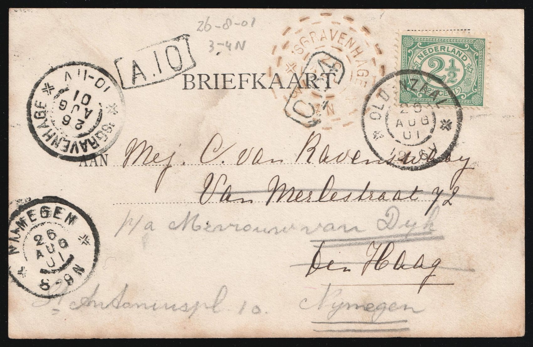 1901 (26 Aug) Netherlands, Postcard from Oldenzaal via Nijmegen to Hague franked with 2.5c. | Michel 52 (Image 1)