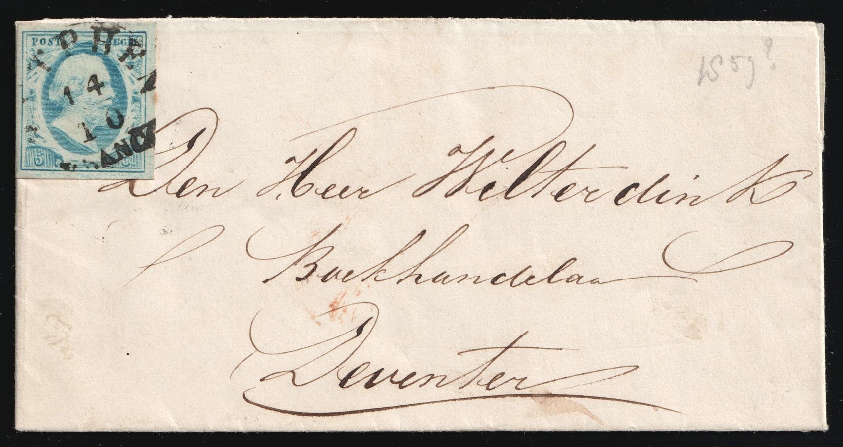 1853 (14 Oct) Netherlands, Cover from Zutphen to Deventer franked with 5c. | Michel 1 (Image 1)