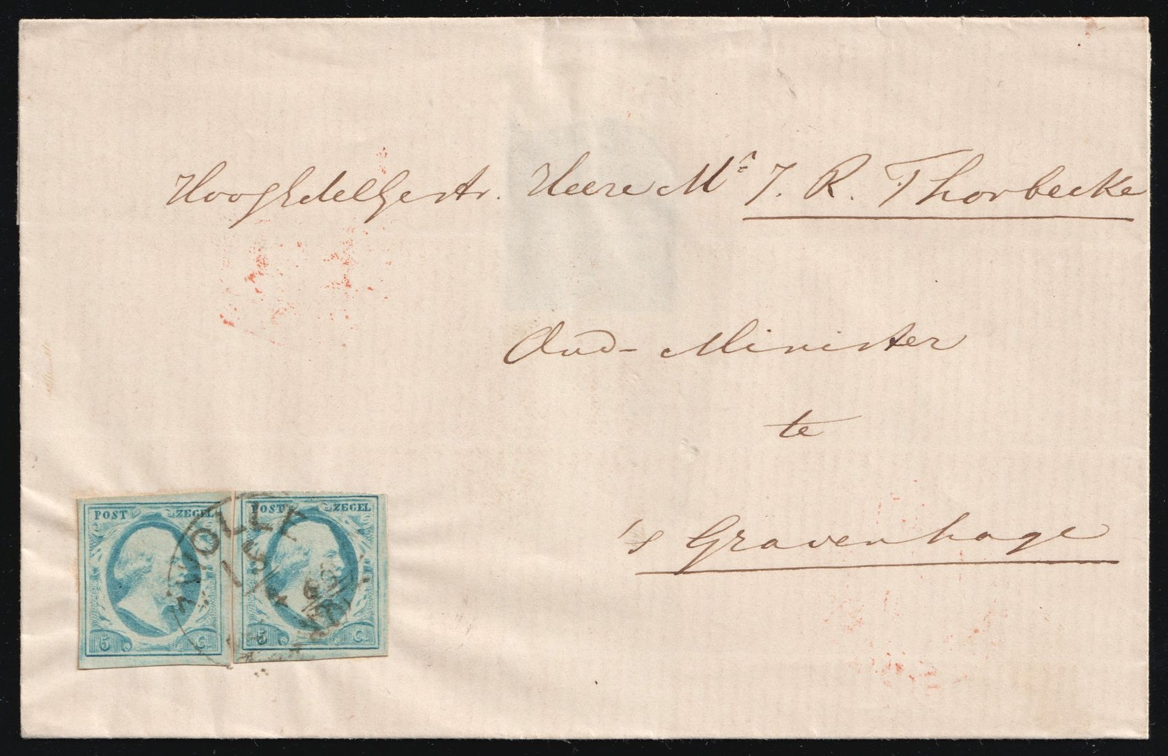 1860 (26 Jan) Netherlands, Cover from Zwolle to Hague franked with pair of 5c. | Michel 1 (Image 1)