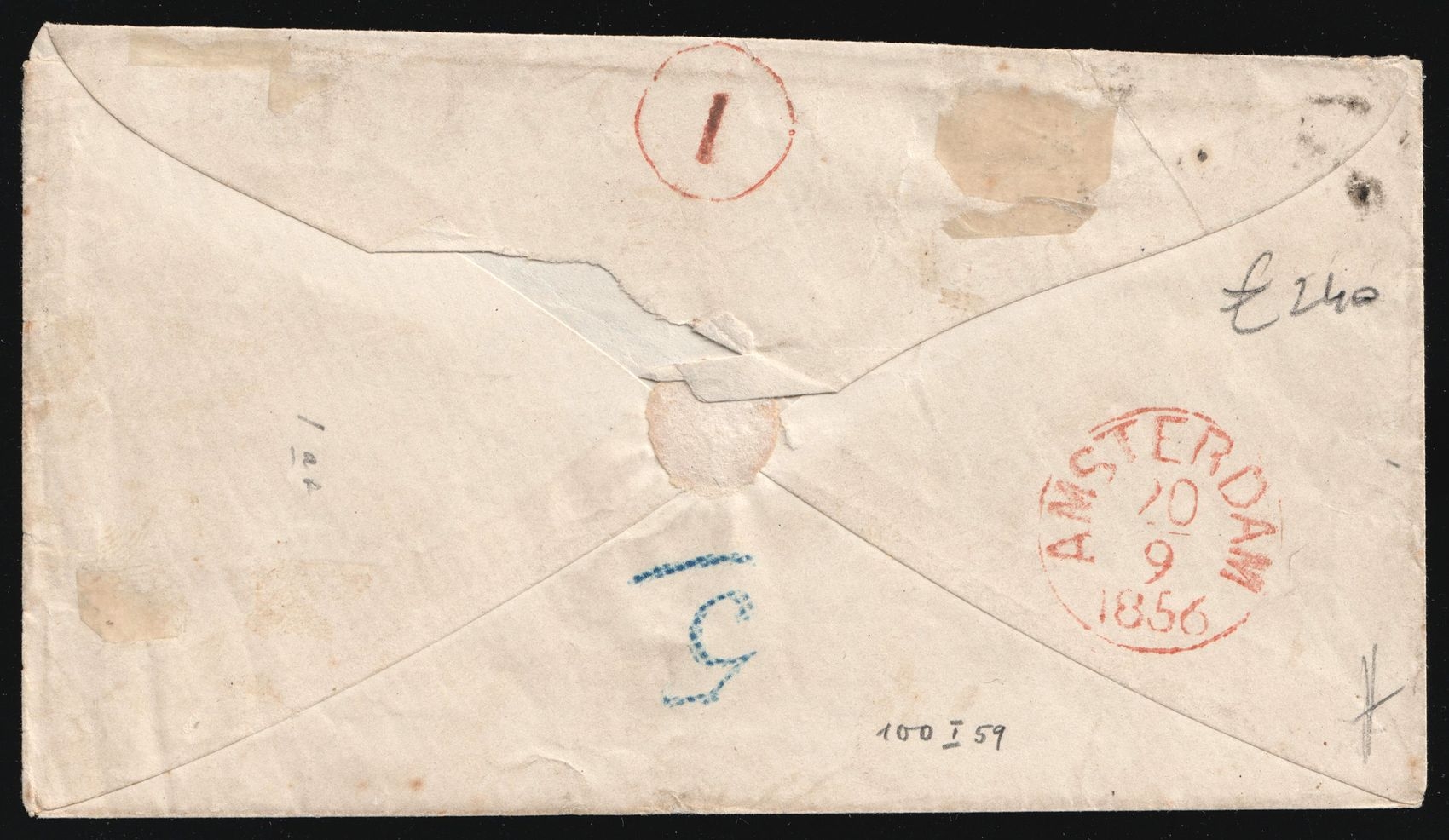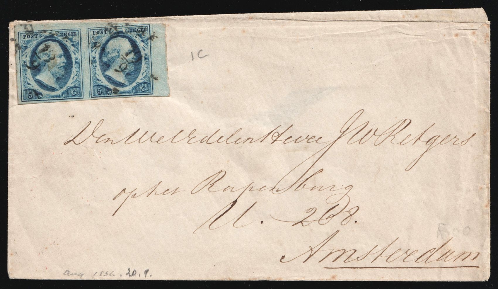 1856 (19 Sep) Netherlands, Cover to Amsterdam franked with pair of 5c, Margin. | Michel 1 (Image 1)