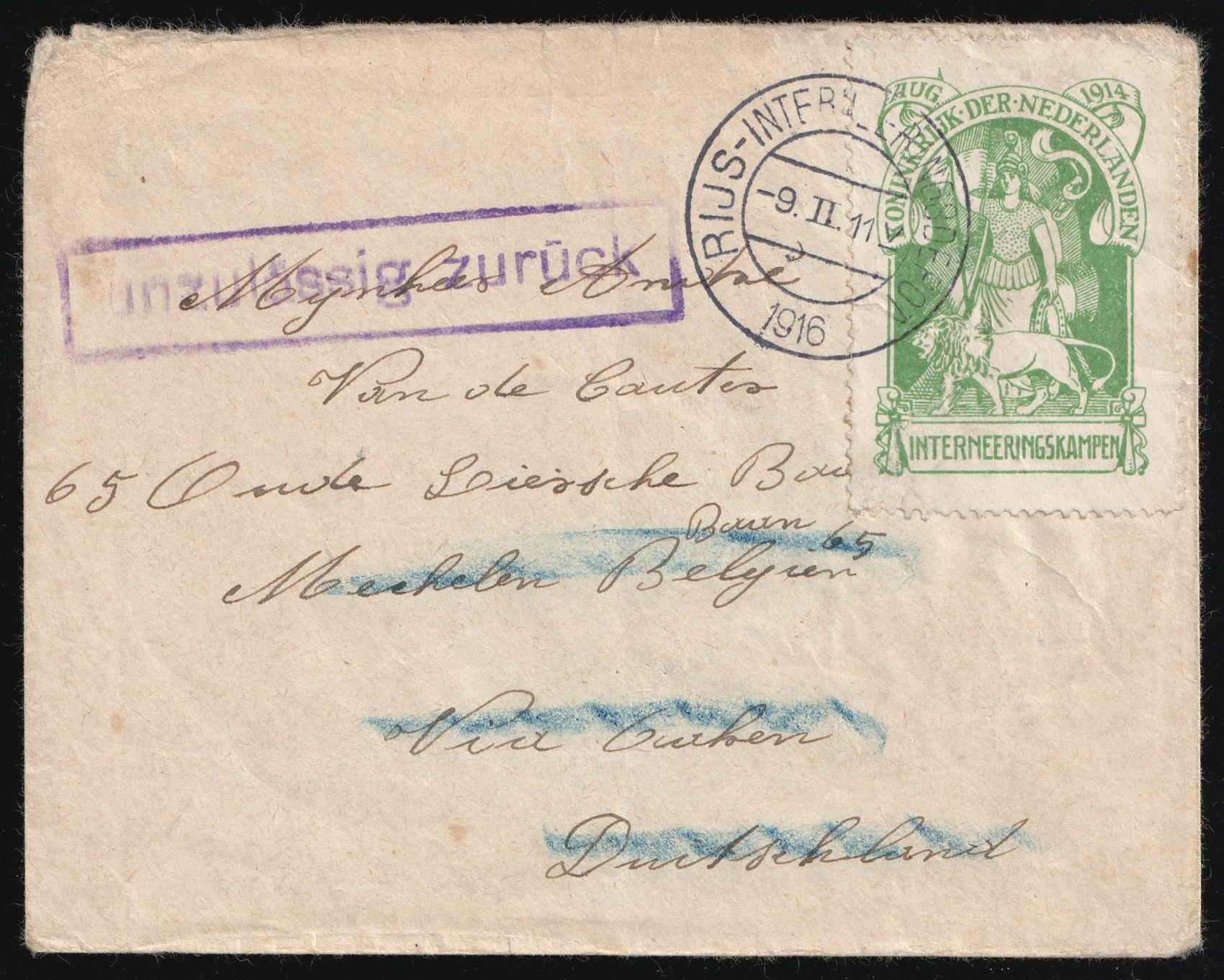 1916 (5 Feb) Netherlands, Military Mail, Returned Cover from Internment Soldier to