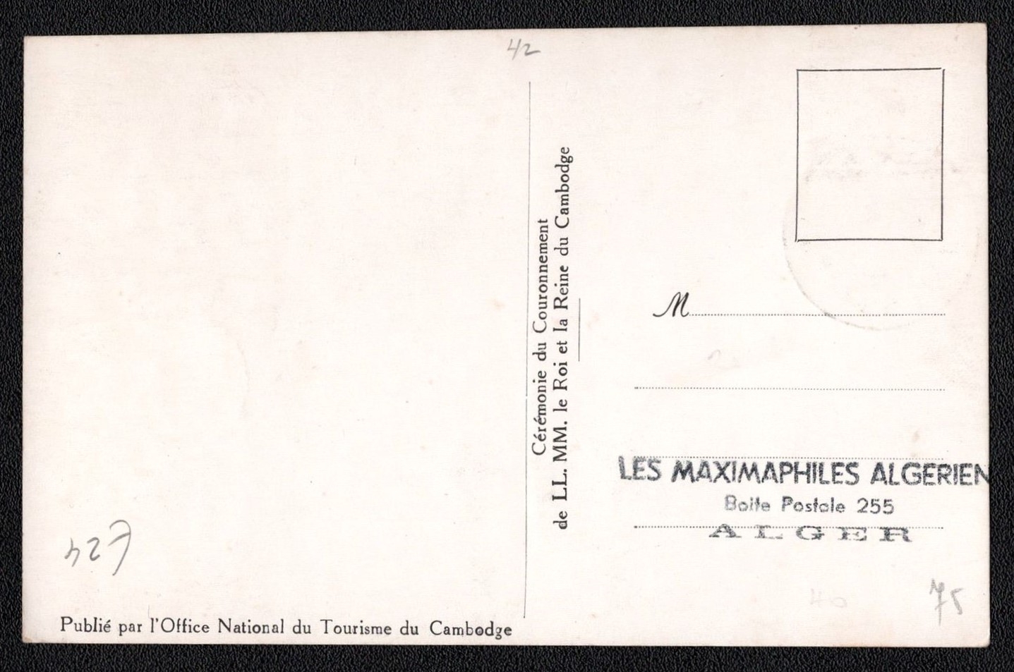 2083 image1959 (23 Oct) Cambodia Postcard from Phnom Penh (Cambodia ) to Algiers (Algeria), franked with 0,50f. | Michel 51 (Image 1) (Image 2)