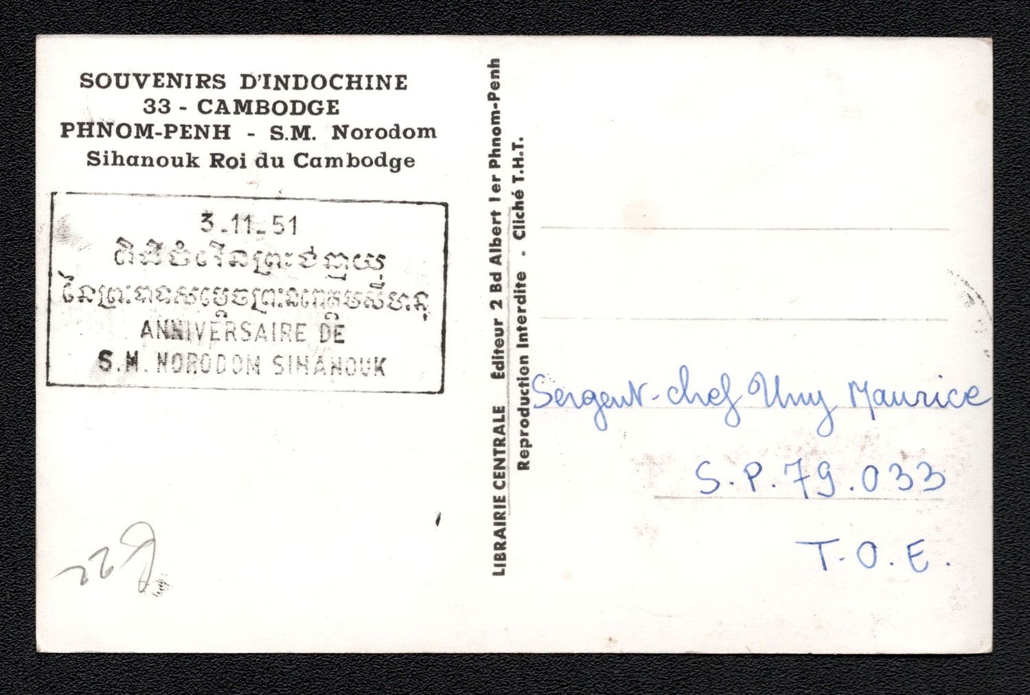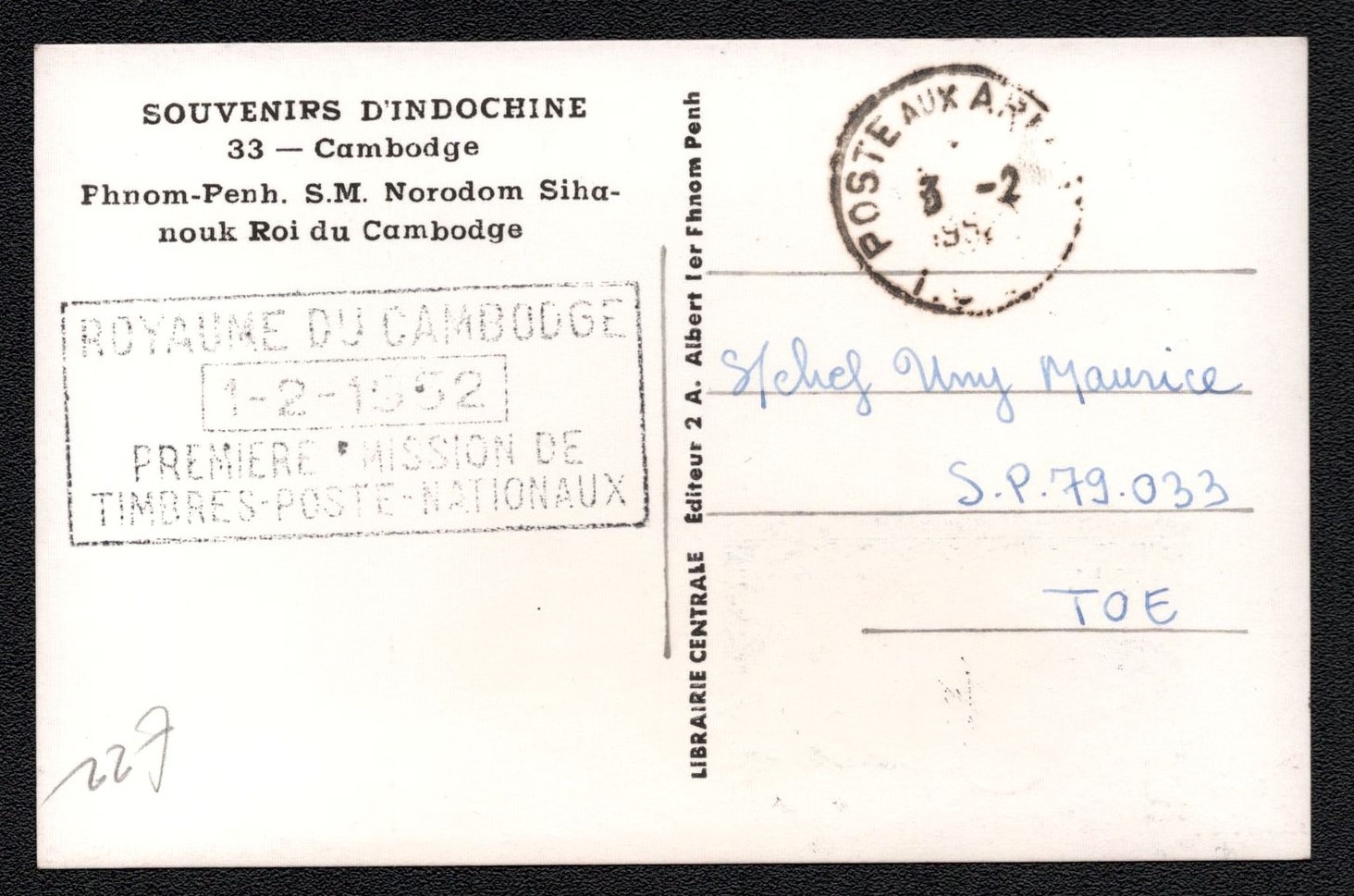 2081 image1951 (3 Nov) Cambodia Postcard from Phnom Penh (Cambodia) franked with 1,50f. | Michel 8 (Image 1) (Image 2)
