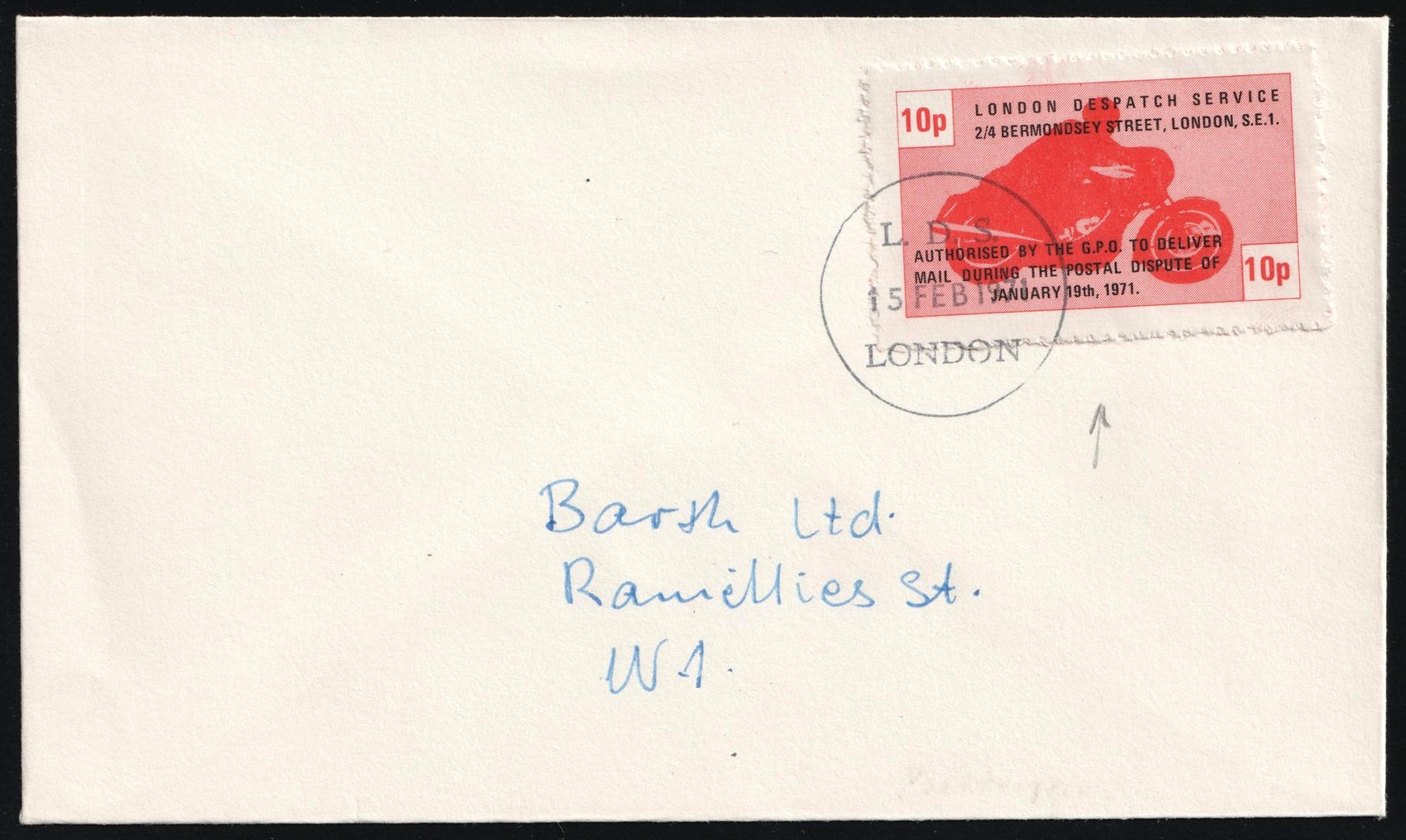 2113 image1971 (15 Feb) Commercial Cover from London (Great Britain) to Ramillies (Belgium) franked with Private Post Office in London 'L. D. S.' 10p. (Image 1) (Image 2)